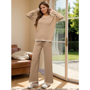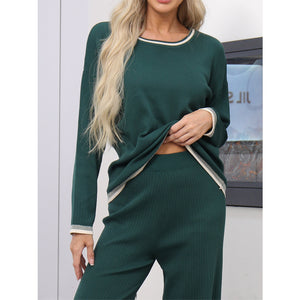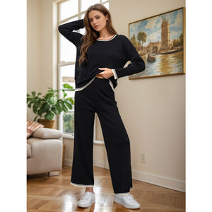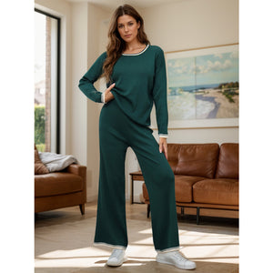 Contrast Trim Round Neck Top and Pants Sweater Set