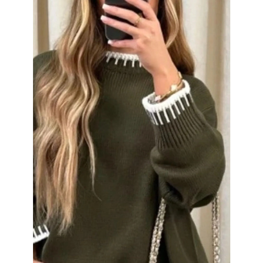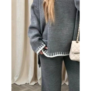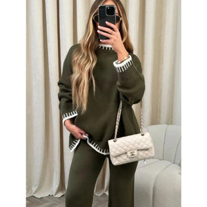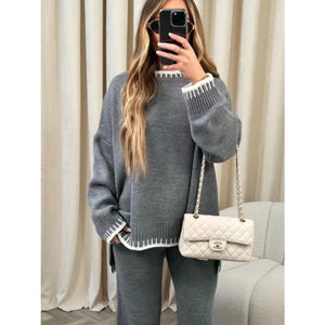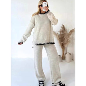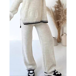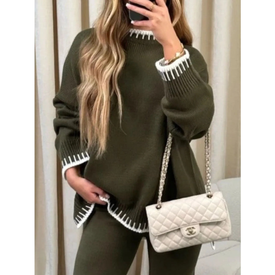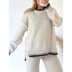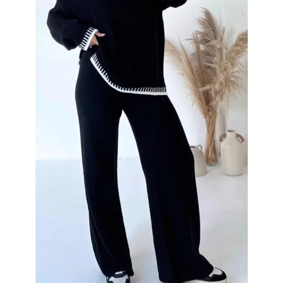 Contrast Trim Round Neck Top and Pants Sweater Set