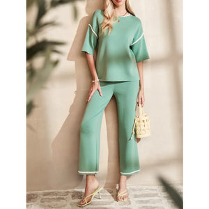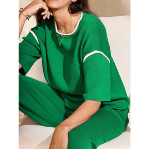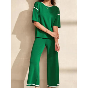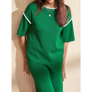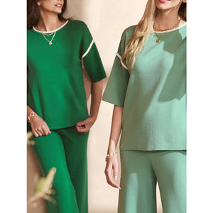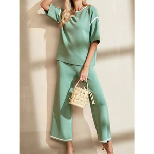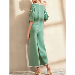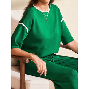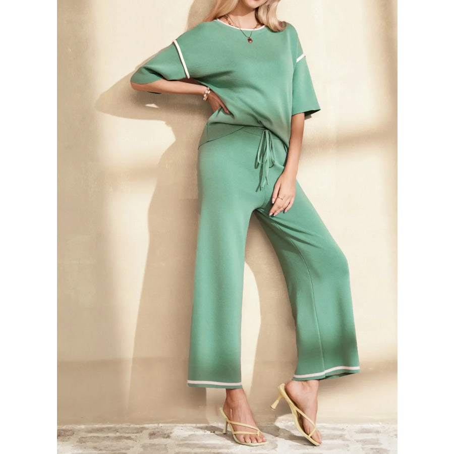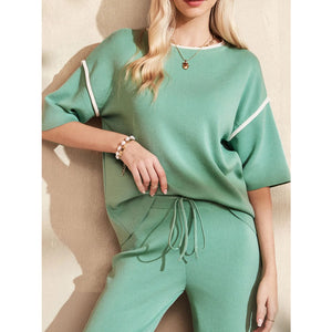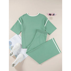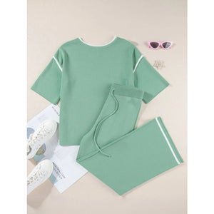 Contrast Trim T-Shirt and Drawstring Pants Set