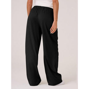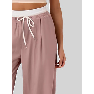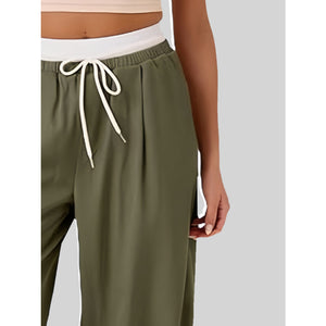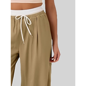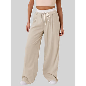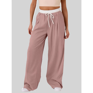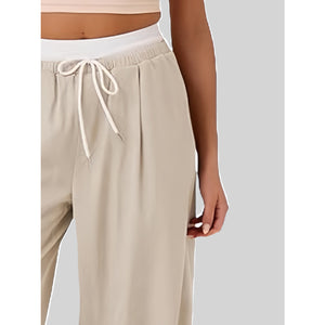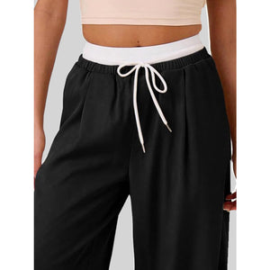 Contrast Waistband Drawstring Wide Leg Pants