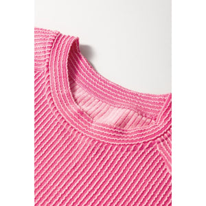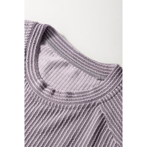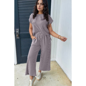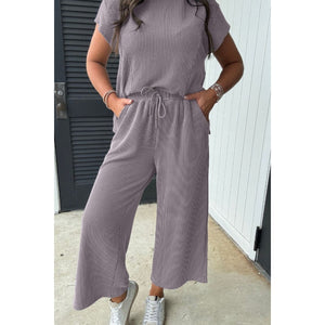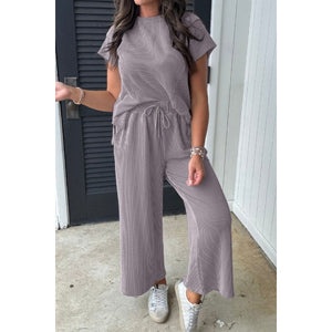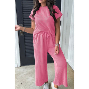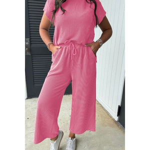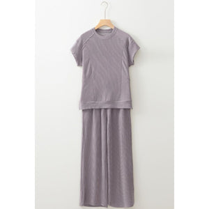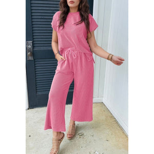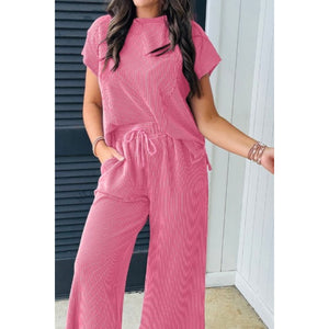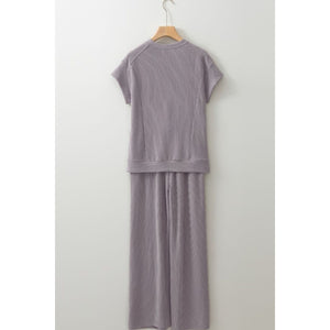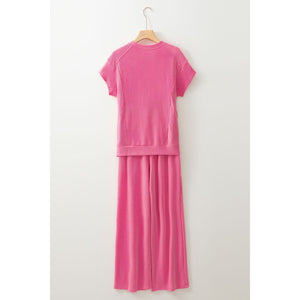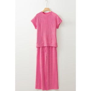 Corded Knit Short Sleeve T-Shirt and Wide Leg Pants Set