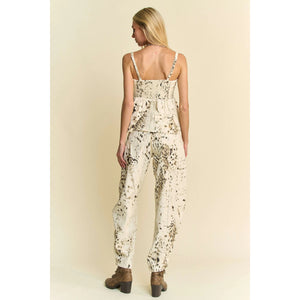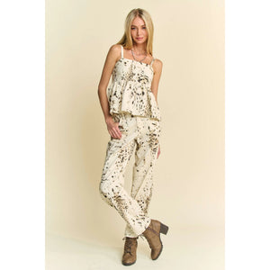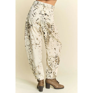 Davi & Dani Abstract Tie Dye Dot Lace Detail Barrel Pants