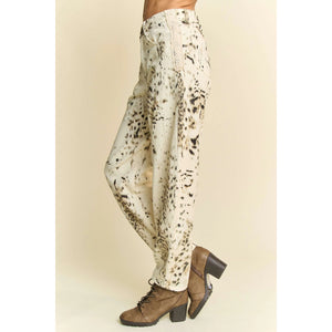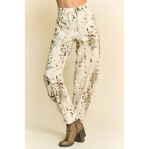 These fashionable high-waisted pants feature a stunning abstract spotted pattern on a cream background. Made from quality cotton blend fabric that ensures both comfort and style. The straight-leg cut offers a flattering silhouette while the artistic print adds a unique contemporary touch. Perfect for both casual and semi-formal occasions, these pants can be easily styled with various tops and accessories. The pattern creates visual interest while maintaining sophistication, making them a versatile addition to any wardrobe.