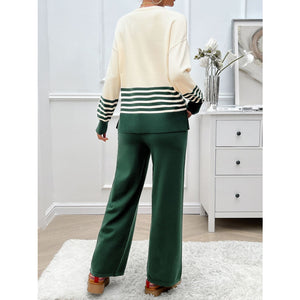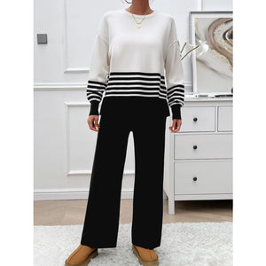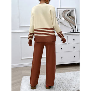Devine Slit Striped Round Neck Top and Pants Sweater Set