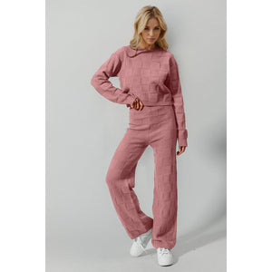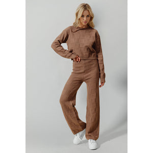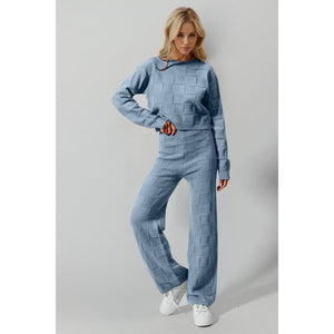 Double Take Full Size Checkered Round Neck Top and Pants Set