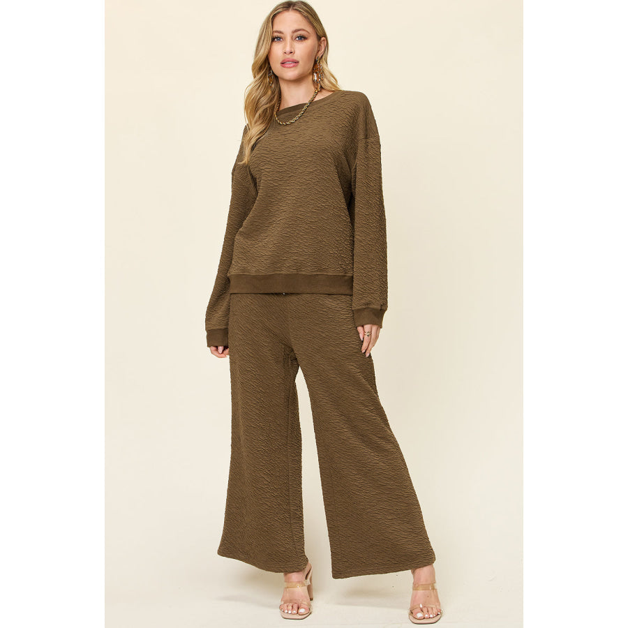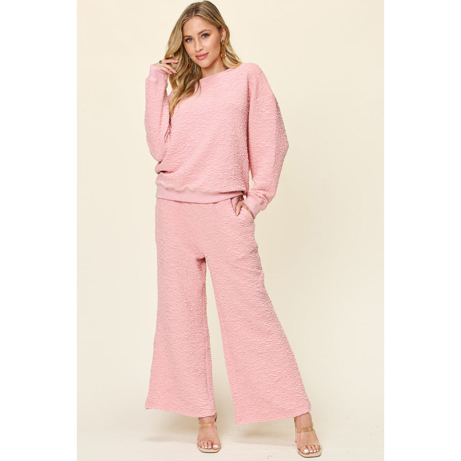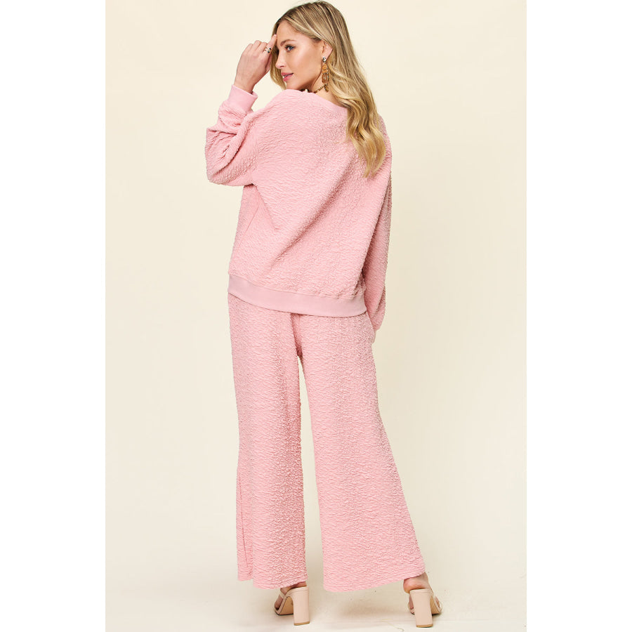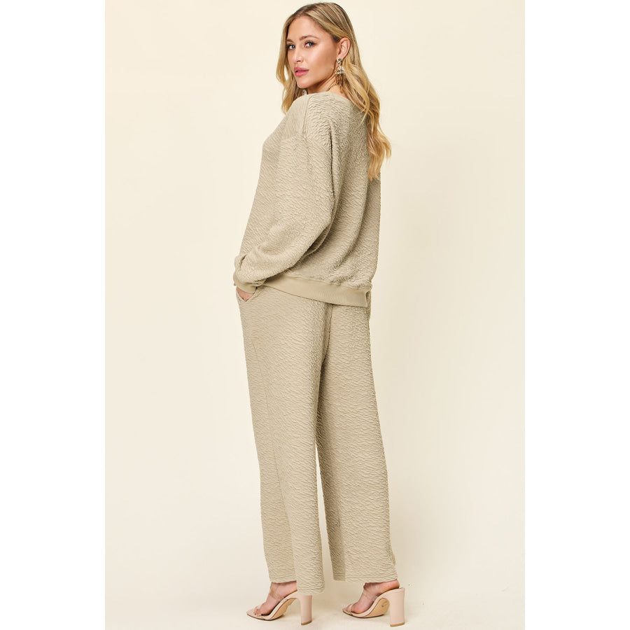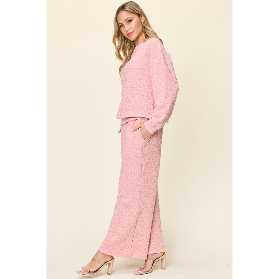 Double Take Full Size Texture Long Sleeve Top and Pants Set