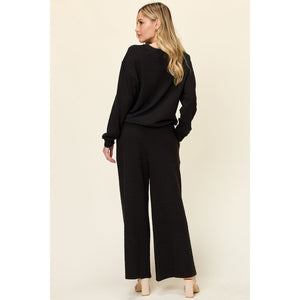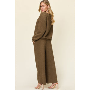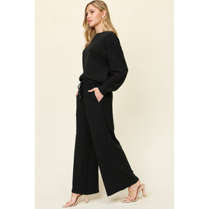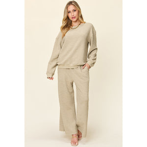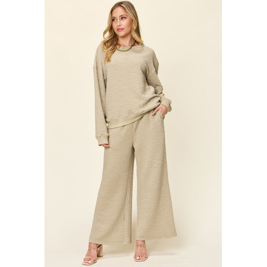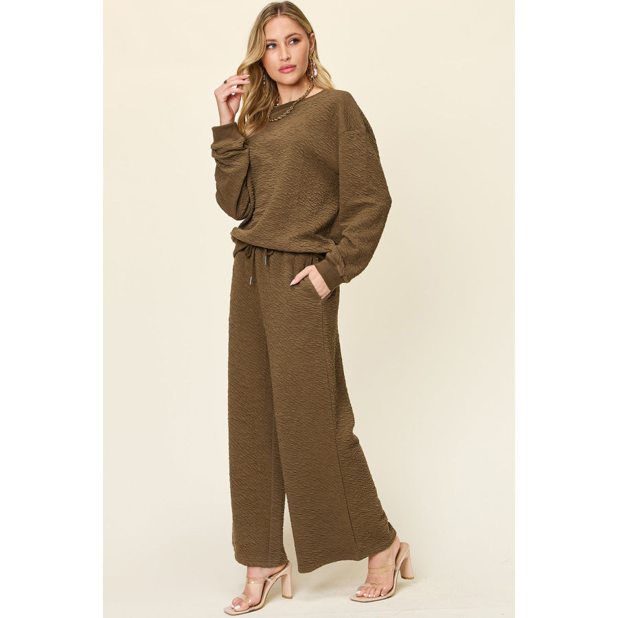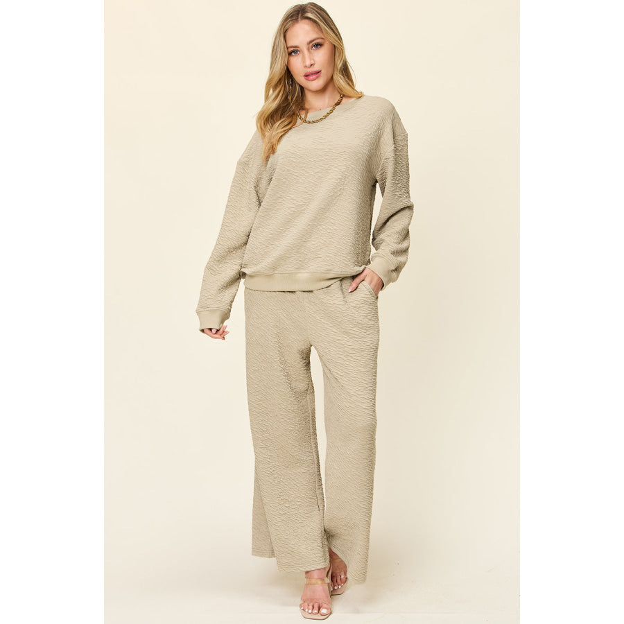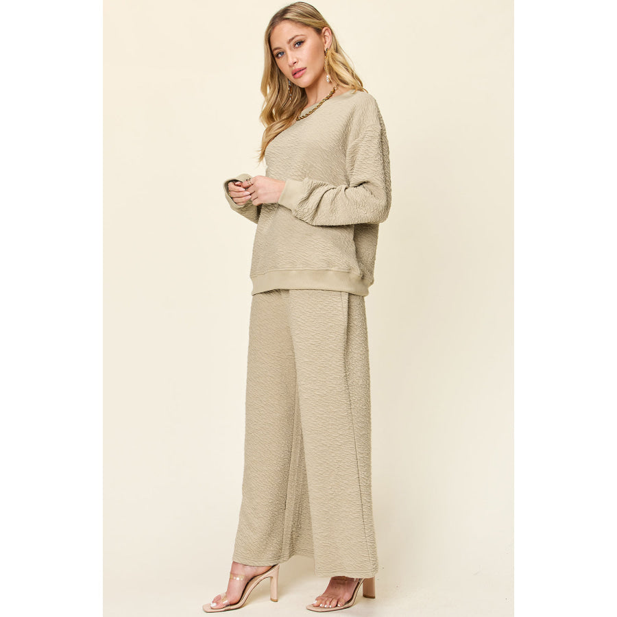 Double Take Full Size Texture Long Sleeve Top and Pants Set