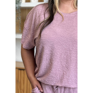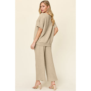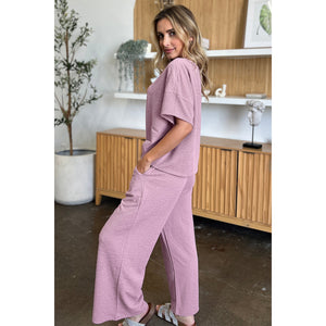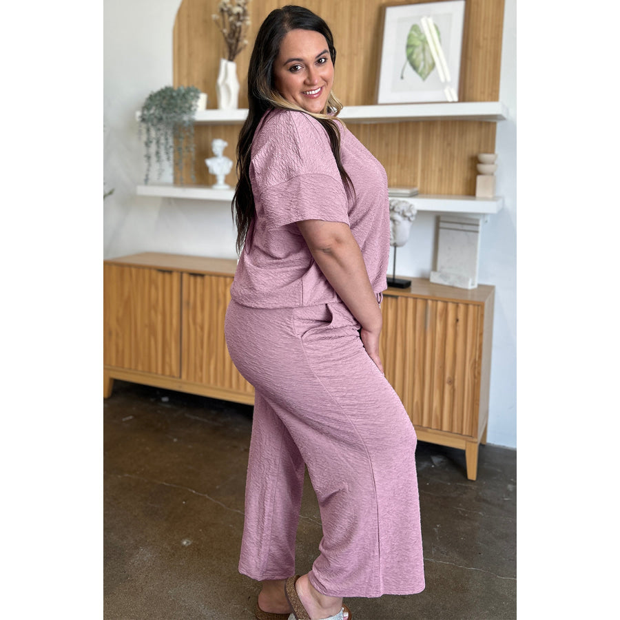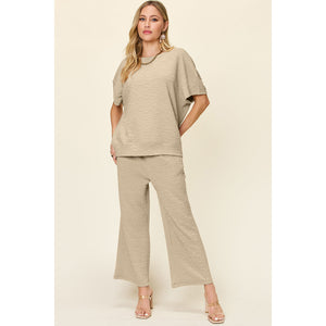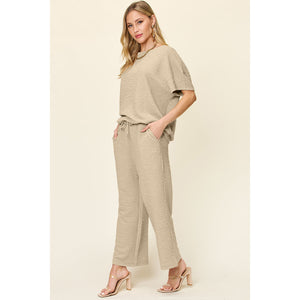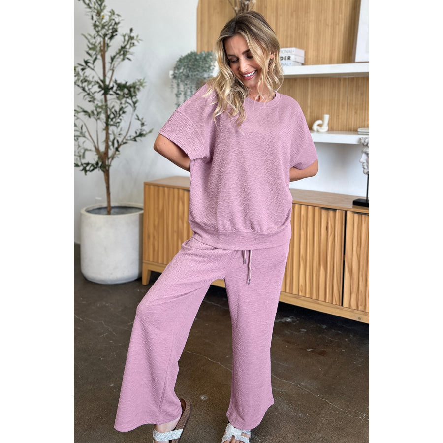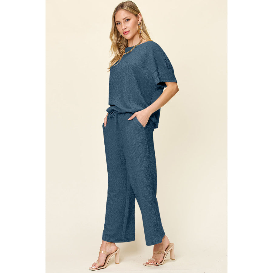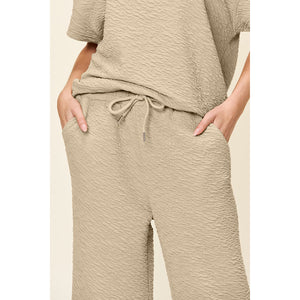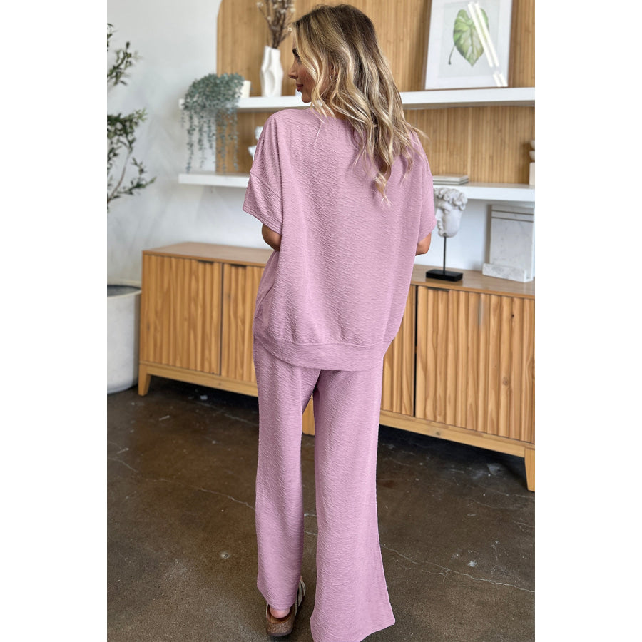 Double Take Full Size Texture Short Sleeve Top and Pants Set
