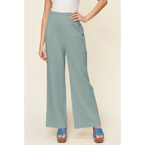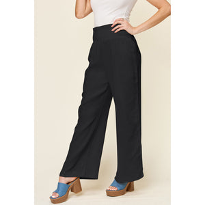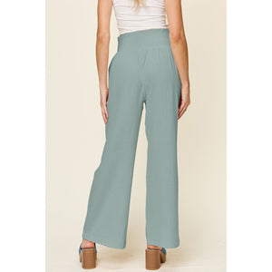 Double Take Full Size Texture Smocked Waist Wide Leg Pants