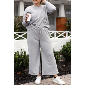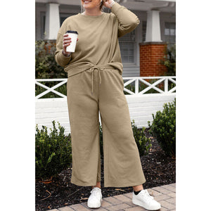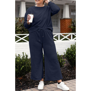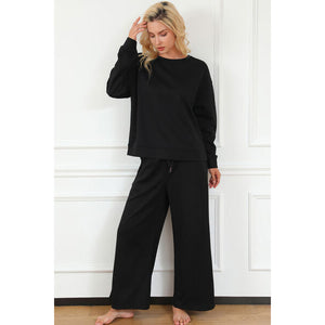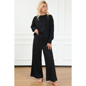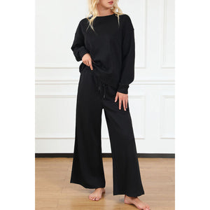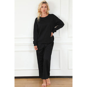 Double Take Full Size Textured Long Sleeve Top and Drawstring Pants Set