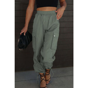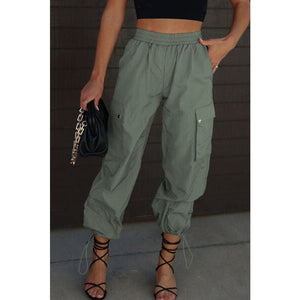 Drawstring Elastic Waist Pants with Pockets