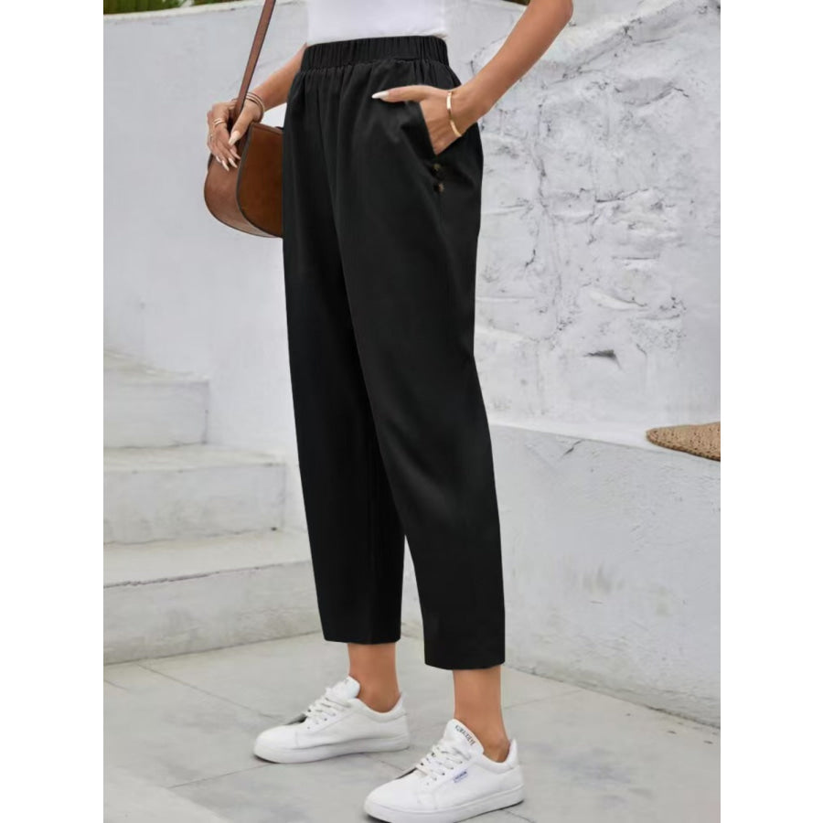 Elastic Waist High Rise Pants