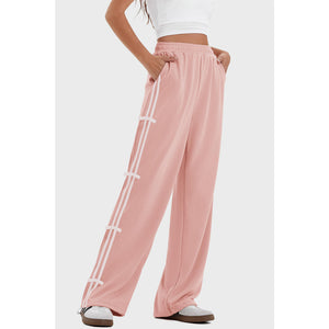Elastic Waist Wide Leg Pants with Pockets