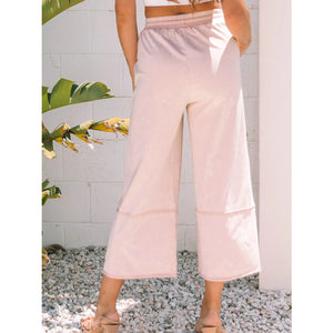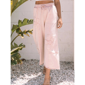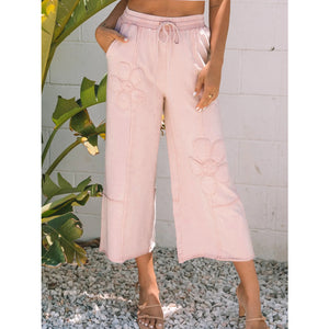 Floral Wide Leg Crop Pants with Drawstring Waistband