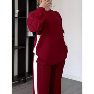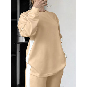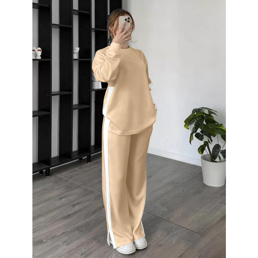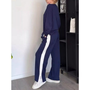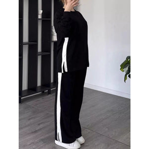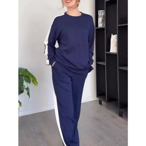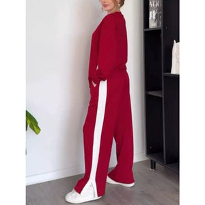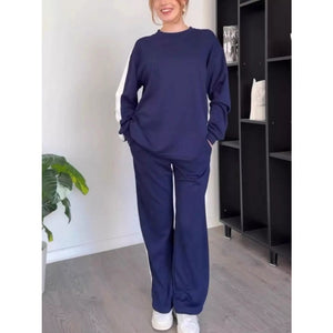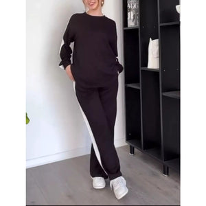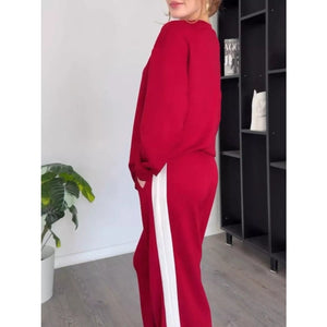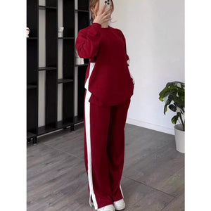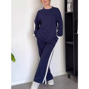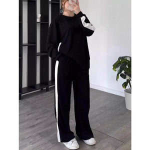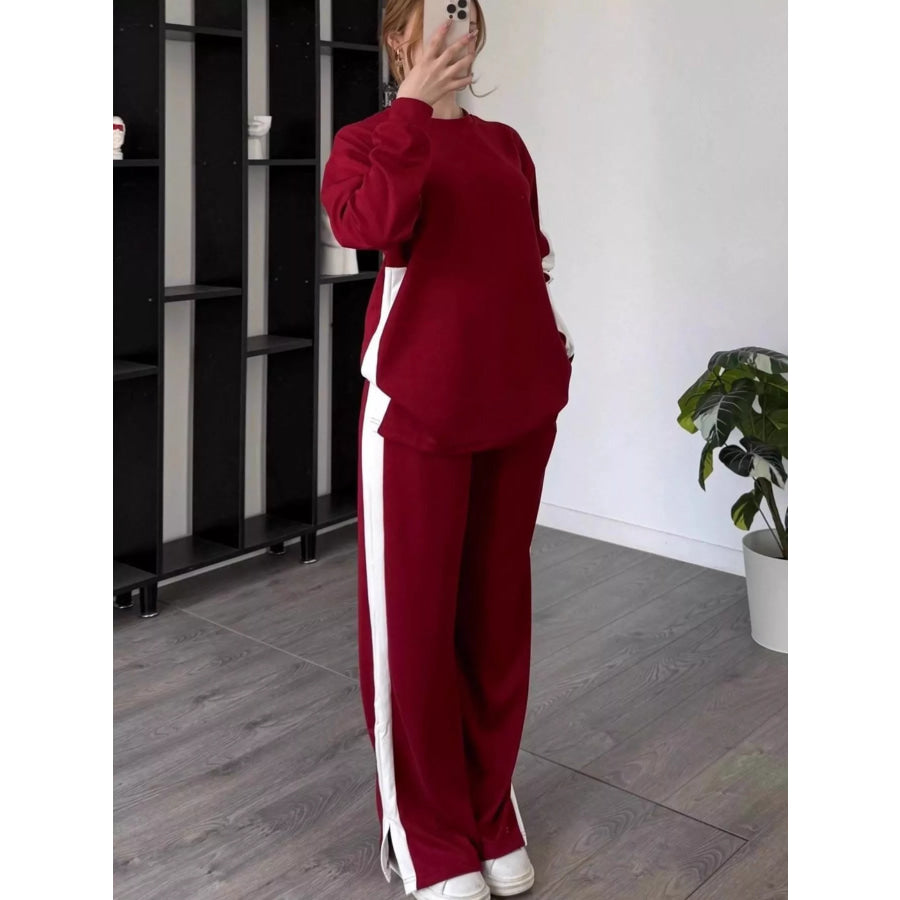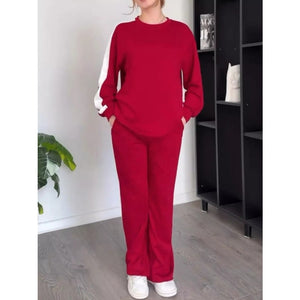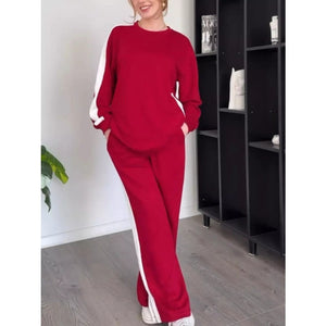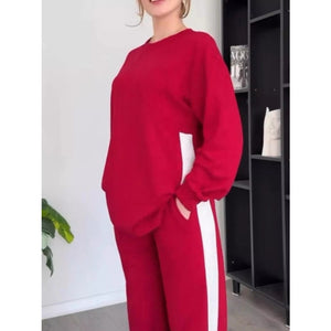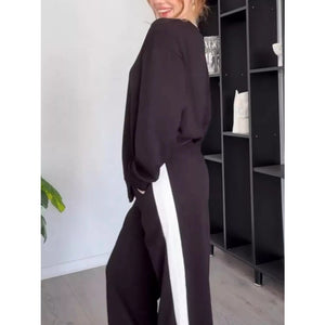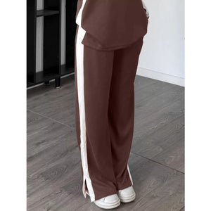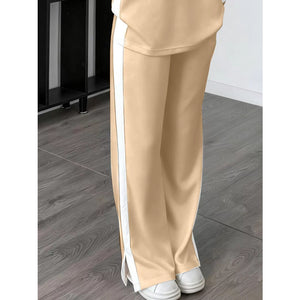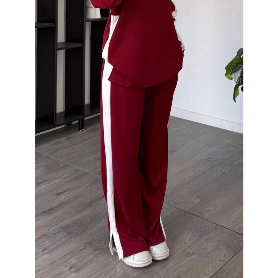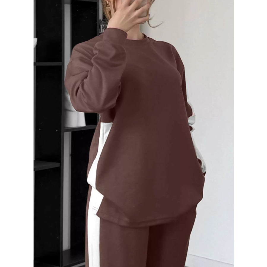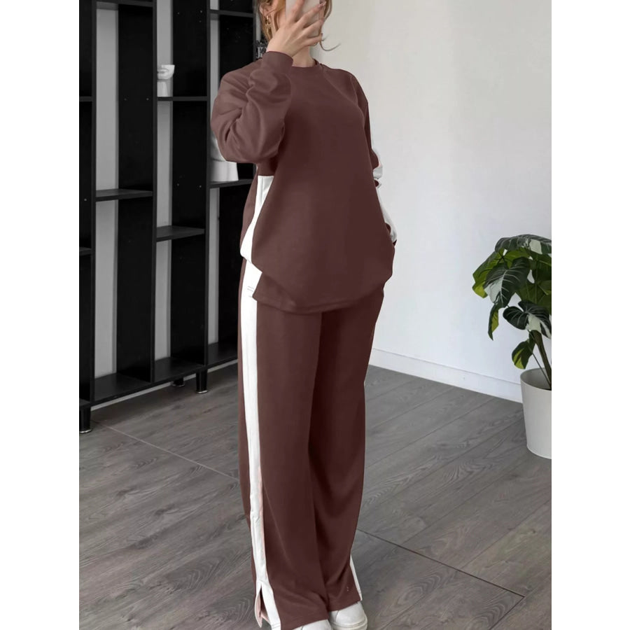 Full Size Contrast Round Neck Top and Pants Set Plus Size