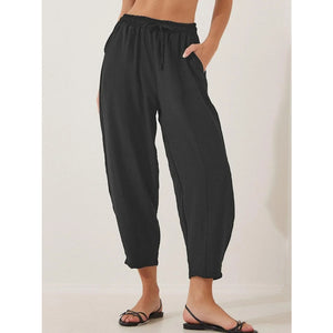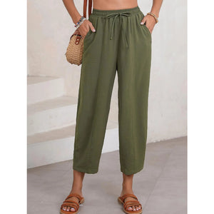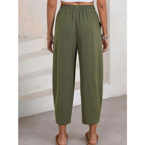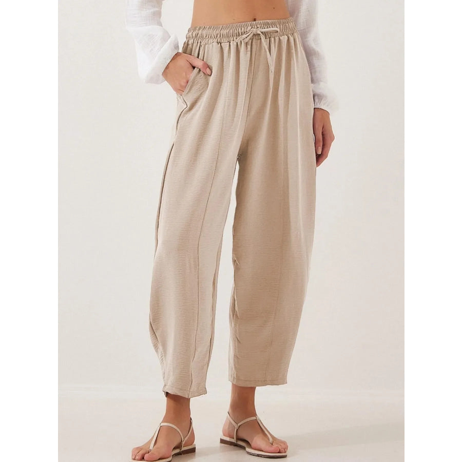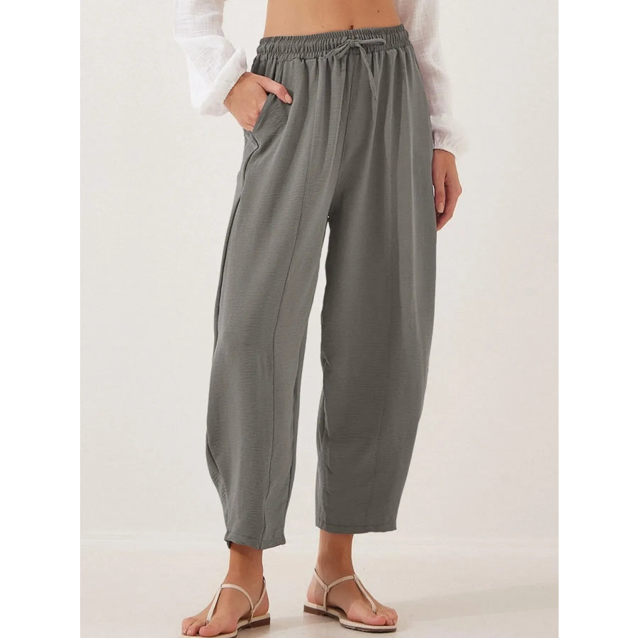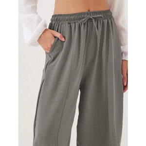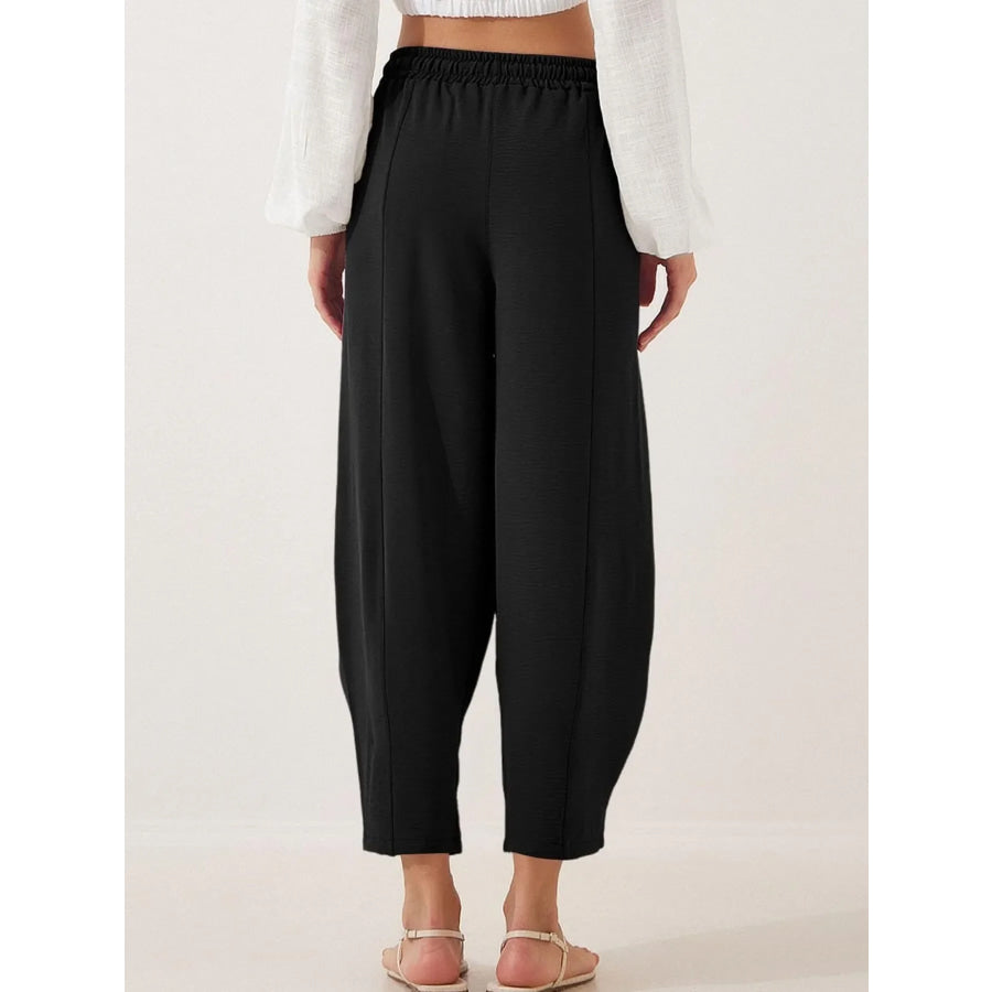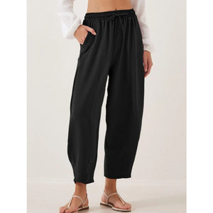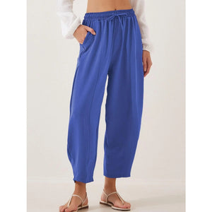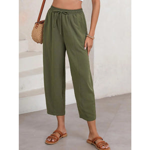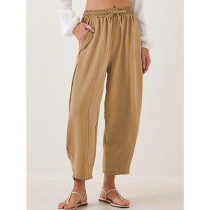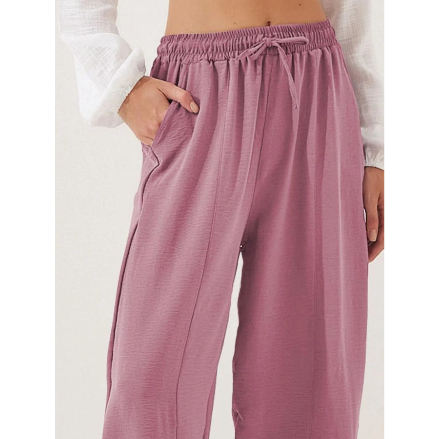 Full Size Drawstring Wide Leg Cropped Pants Plus Size