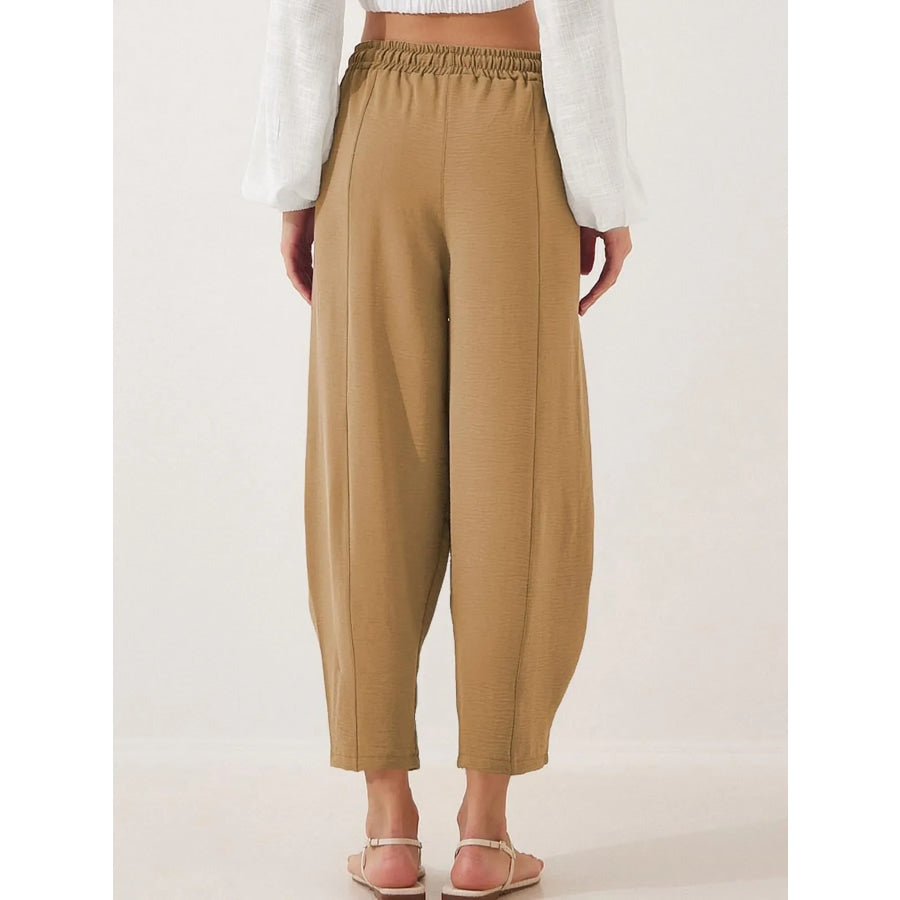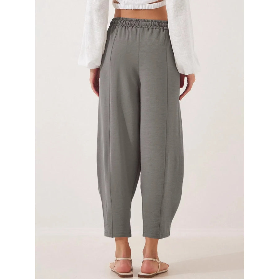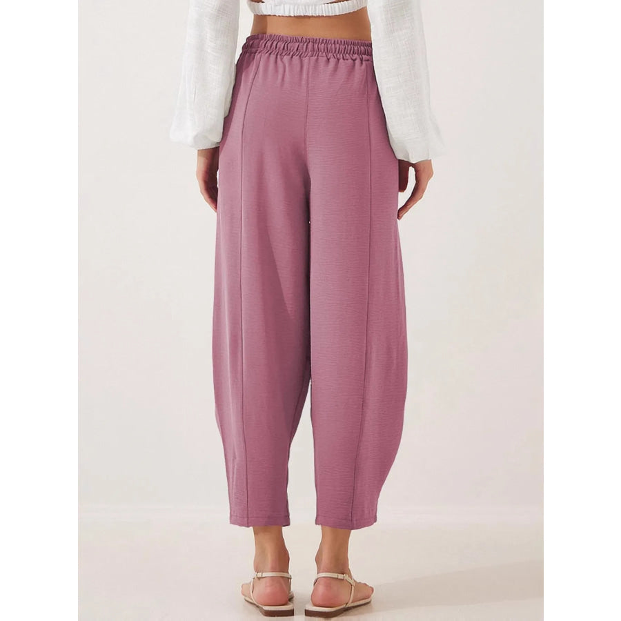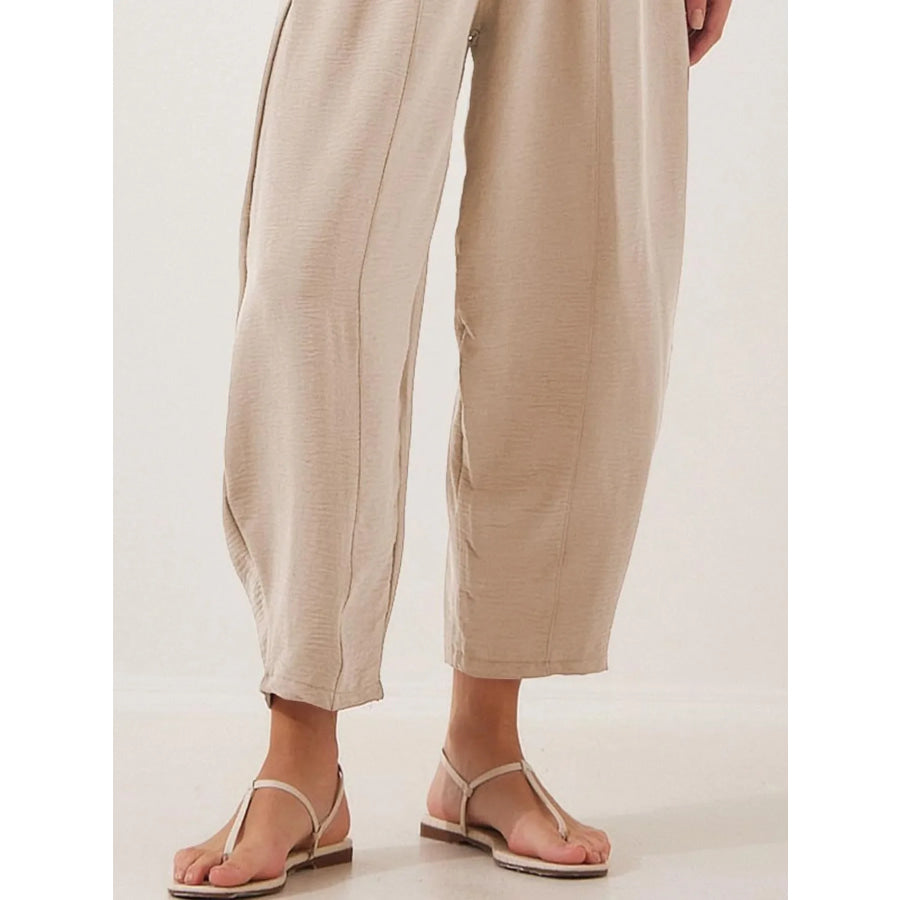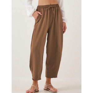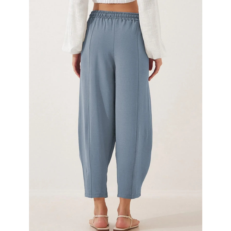 Full Size Drawstring Wide Leg Cropped Pants Plus Size