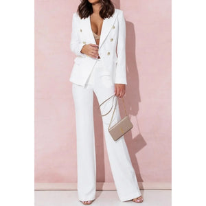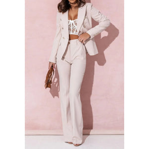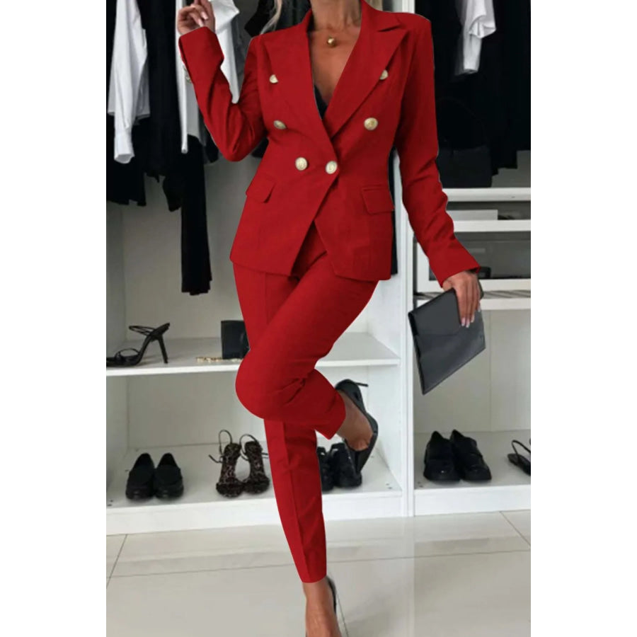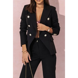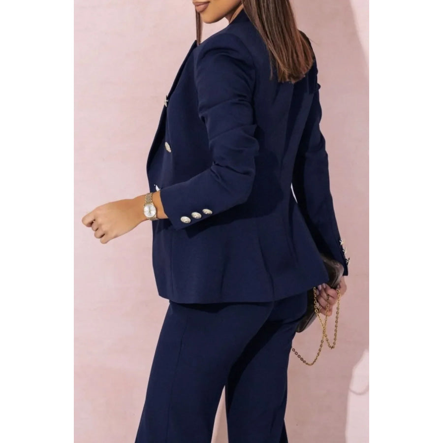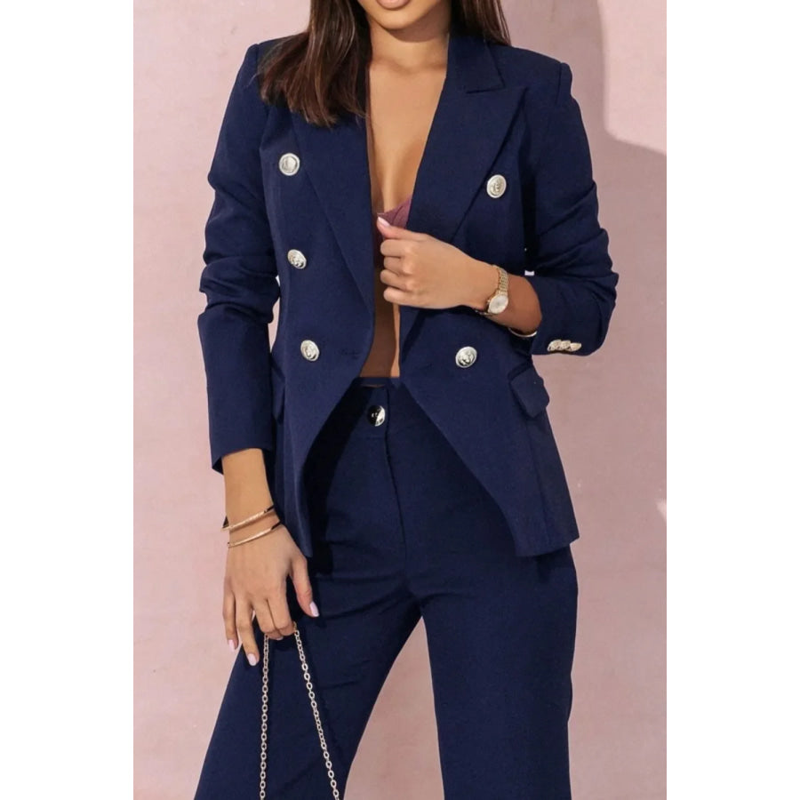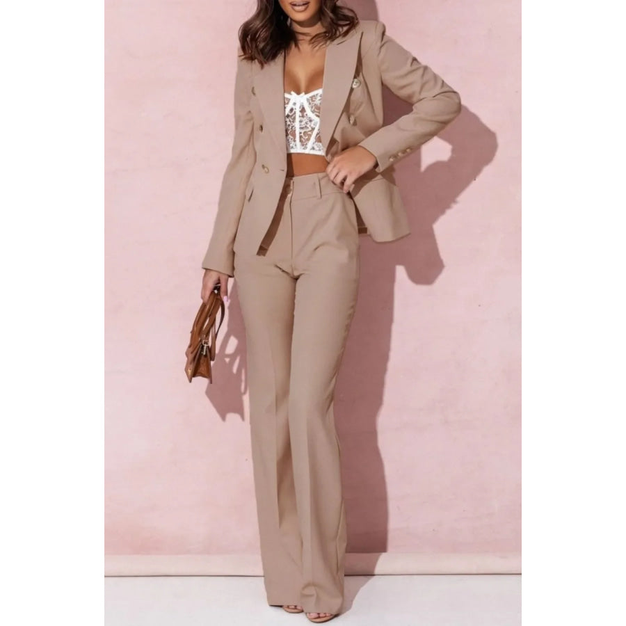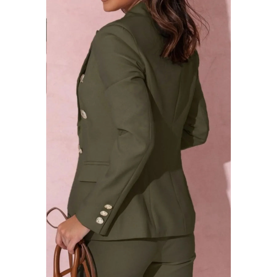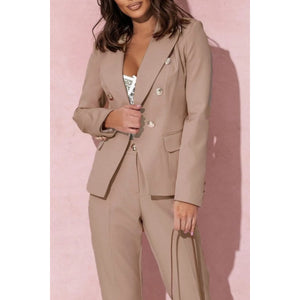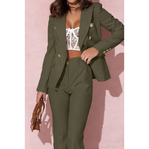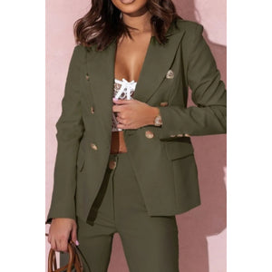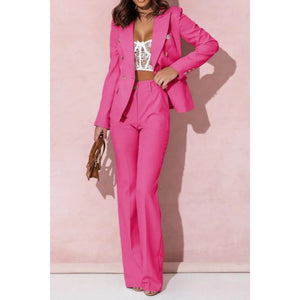 Full Size Lapel Collar Long Sleeve Blazer and Pants Set Plus Size