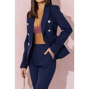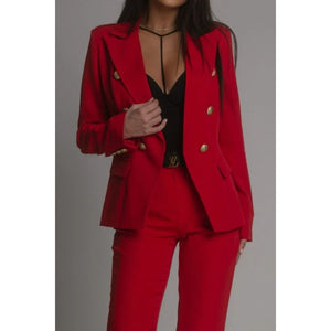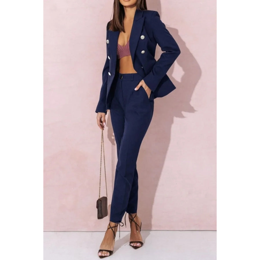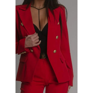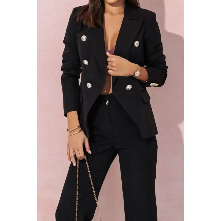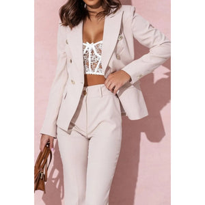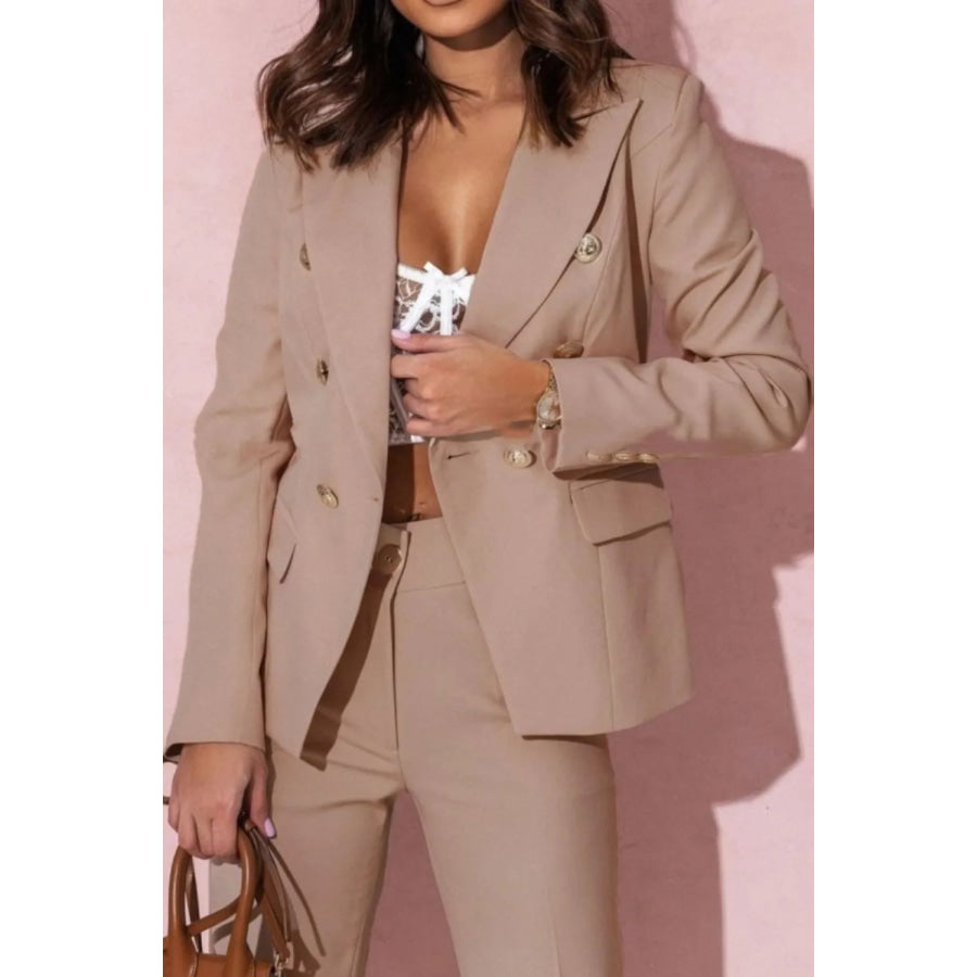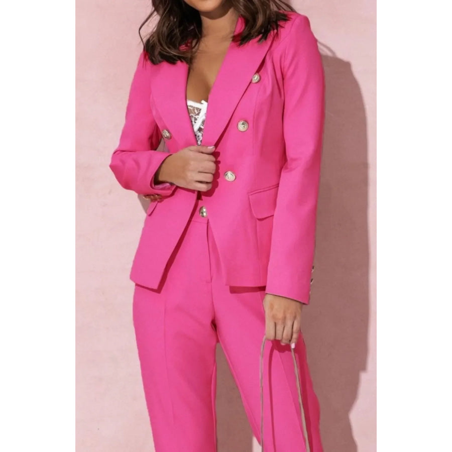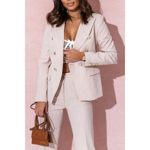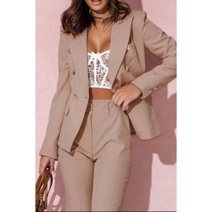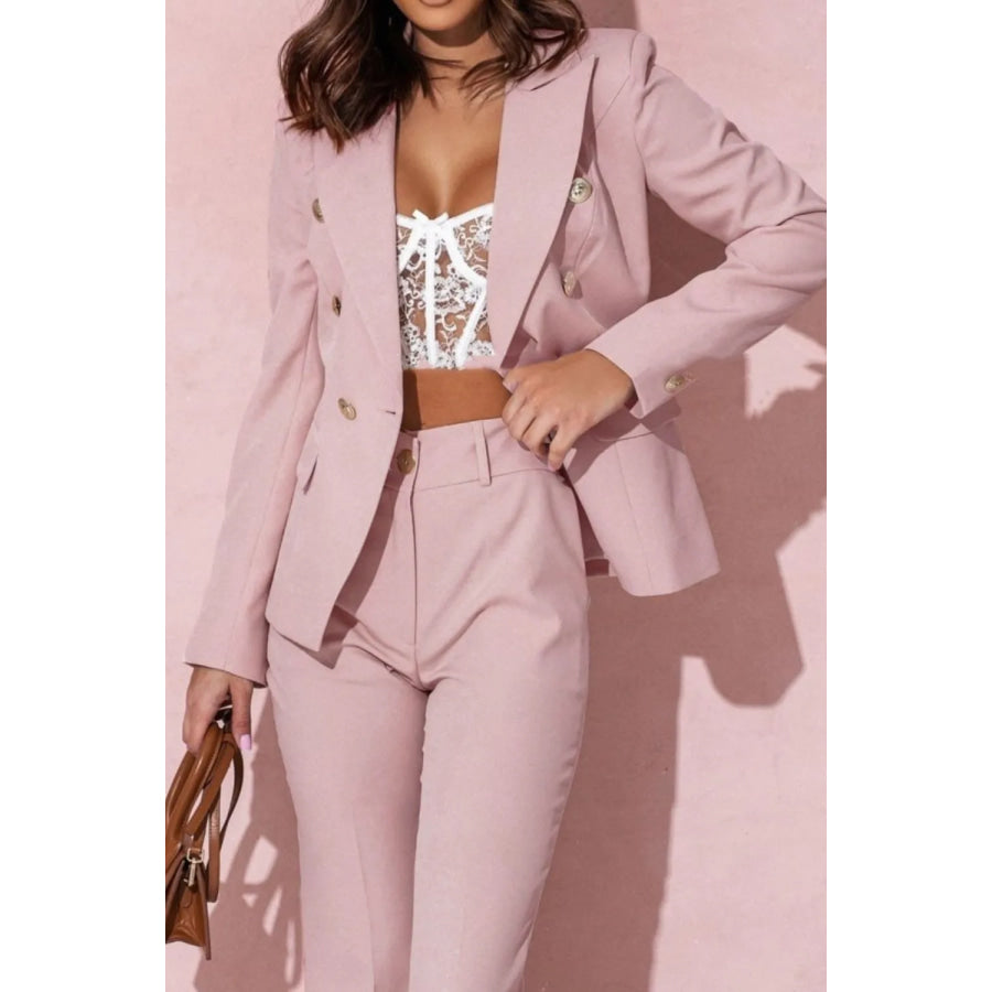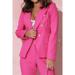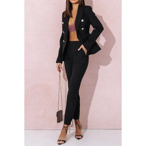Full Size Lapel Collar Long Sleeve Blazer and Pants Set Plus Size
