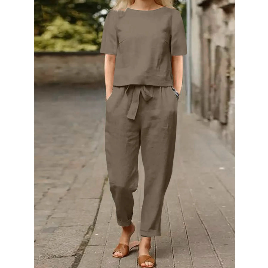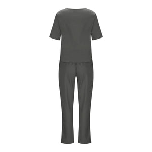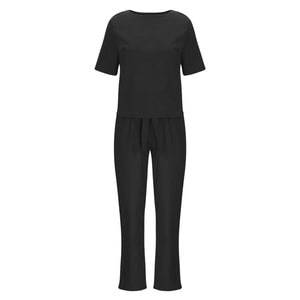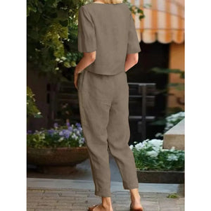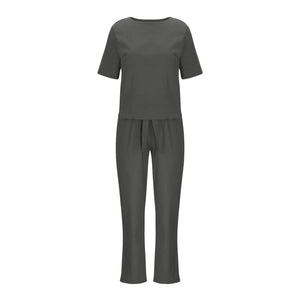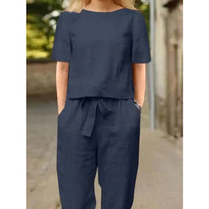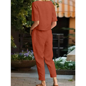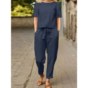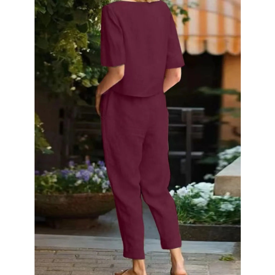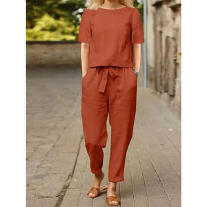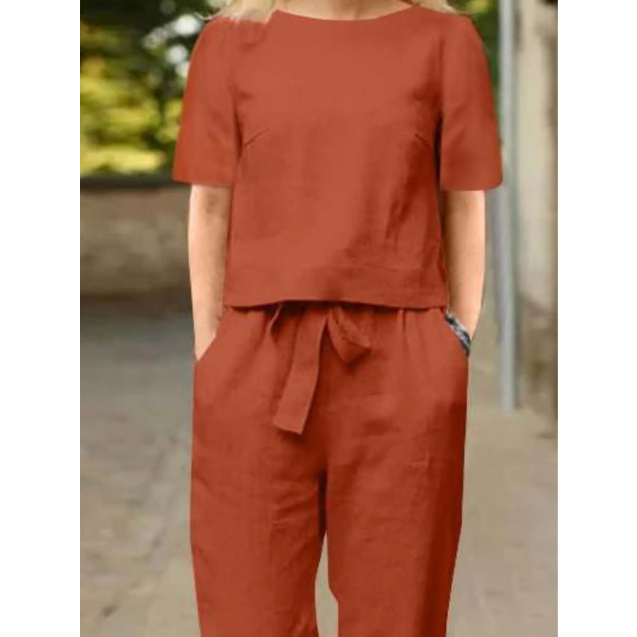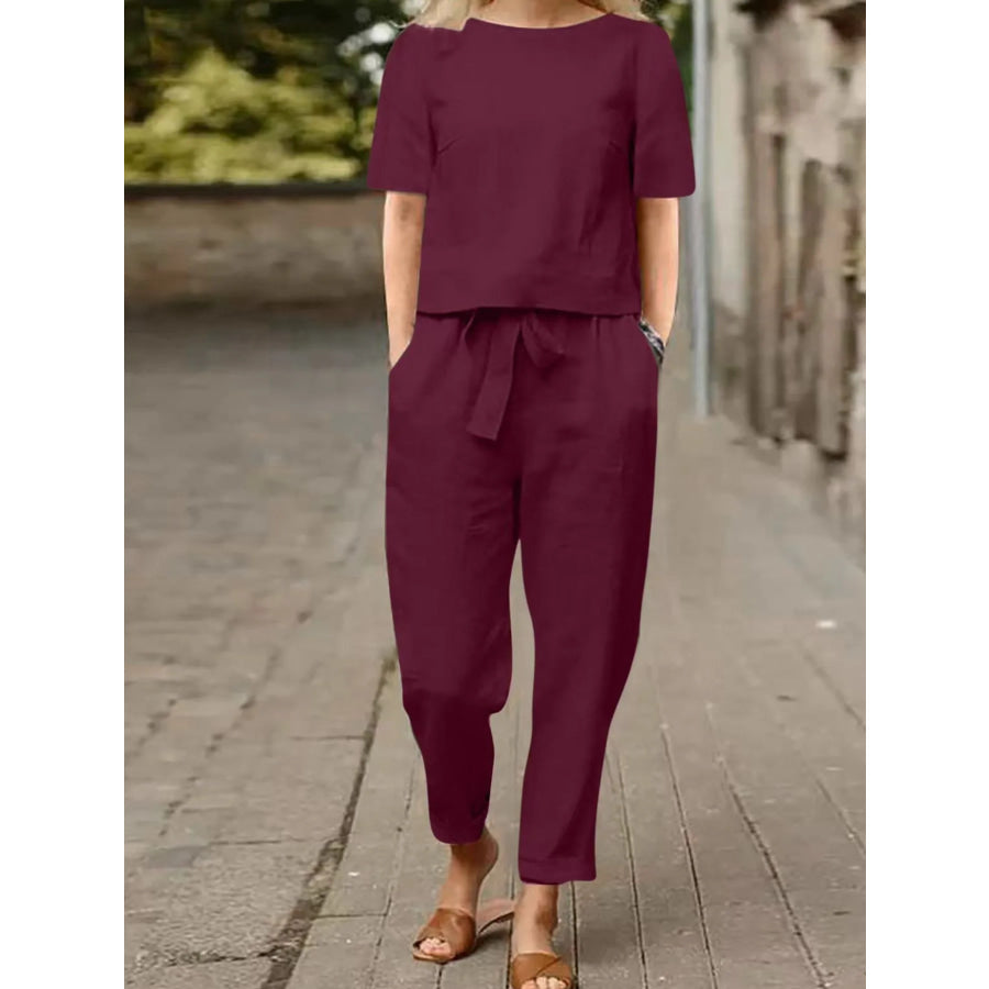 Full Size Round Neck Short Sleeve Top and Pants Set Plus Size
