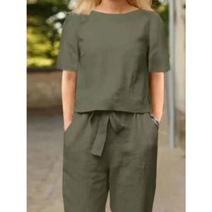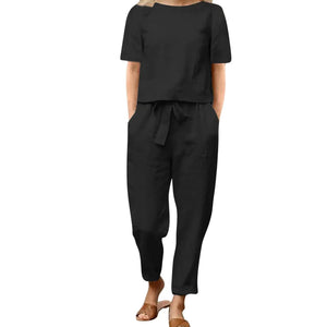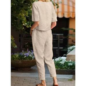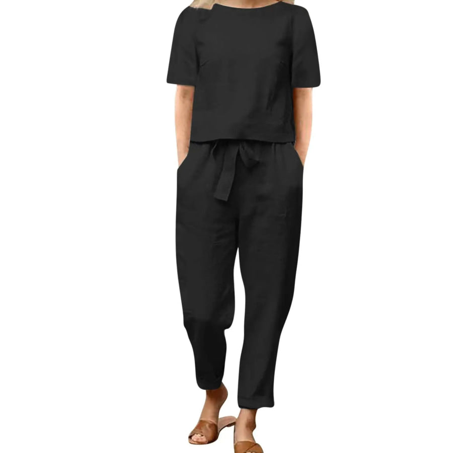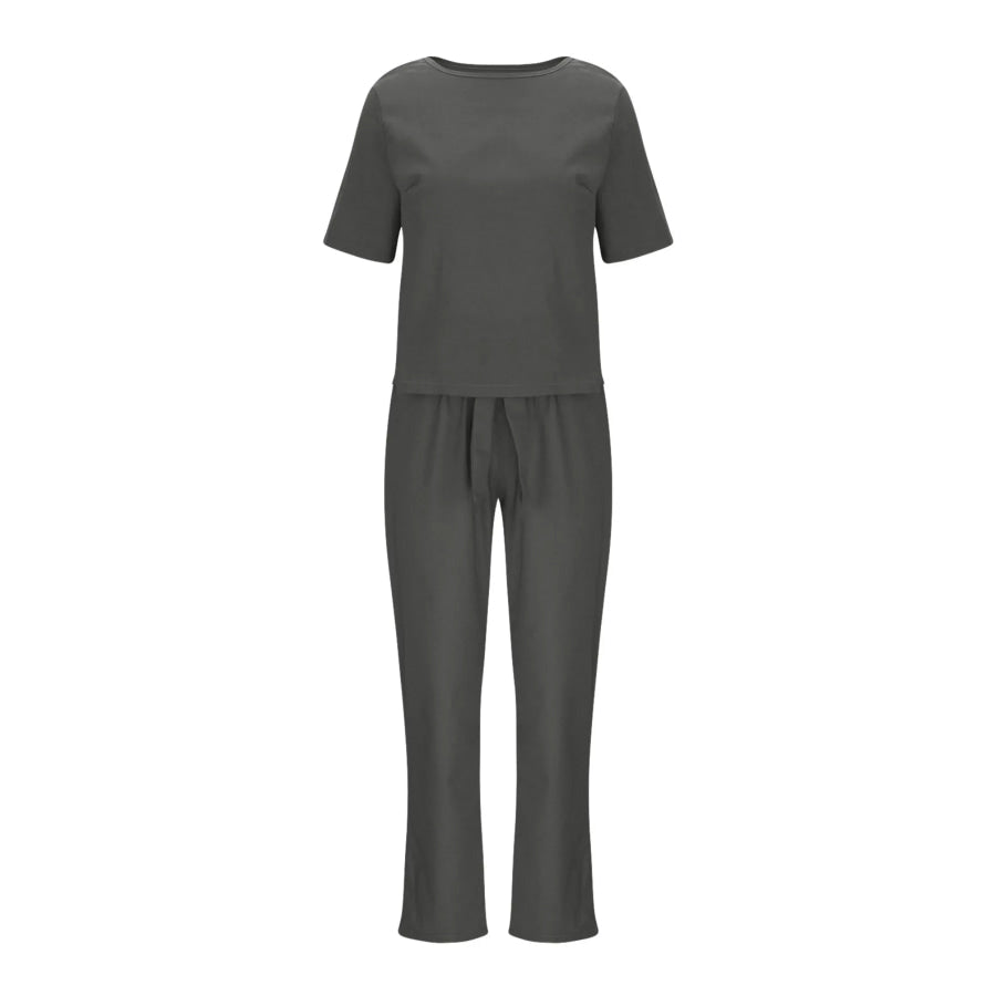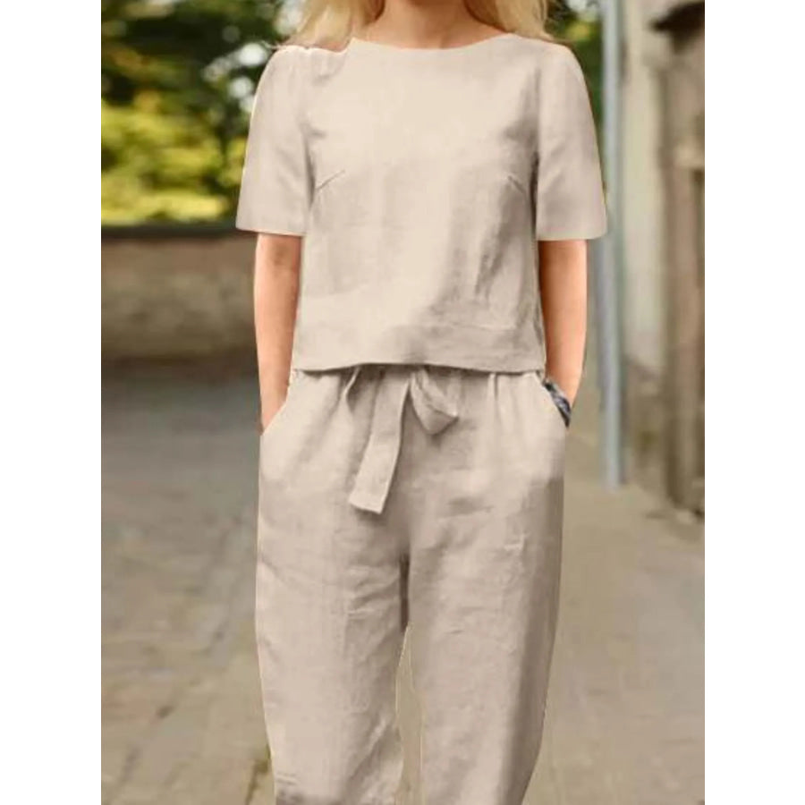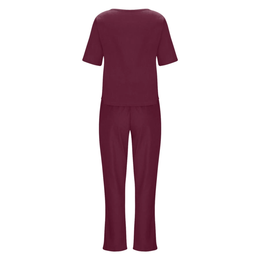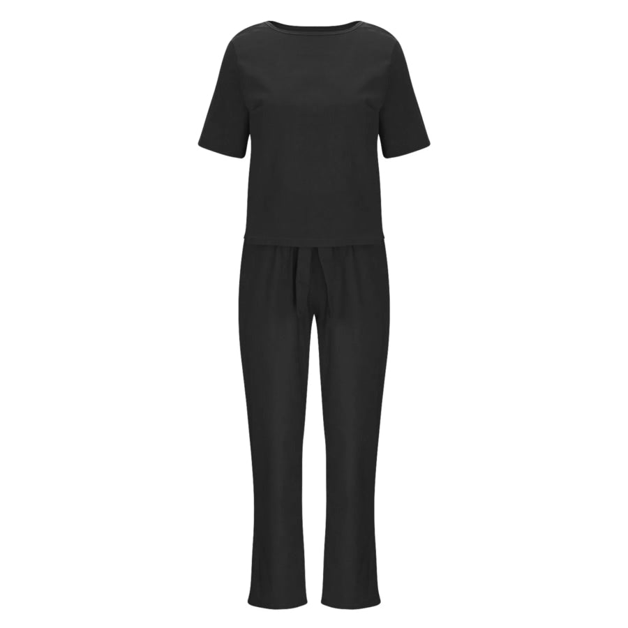 Full Size Round Neck Short Sleeve Top and Pants Set Plus Size