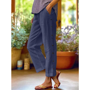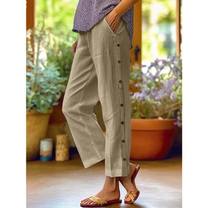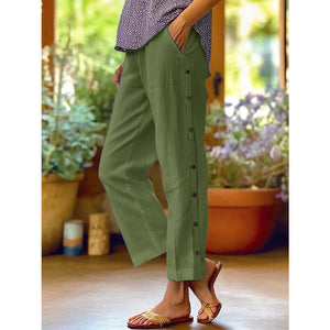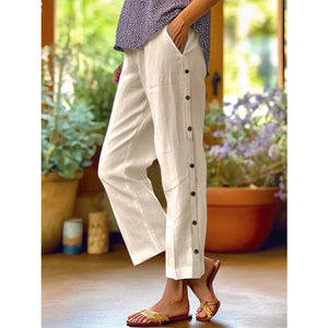 These Full Size Side Decor Button Casual Wide Leg Pants are crafted from lightweight, breathable fabric perfect for all-day comfort. Featuring a distinctive side button decoration that adds a stylish accent to the relaxed wide-leg silhouette, these pants offer both fashion and function. The plus-size friendly design ensures a comfortable fit for all body types, while the casual styling makes them perfect for everyday wear. The premium fabric blend provides durability and easy care, making these pants an essential addition to any wardrobe seeking comfort without compromising style.