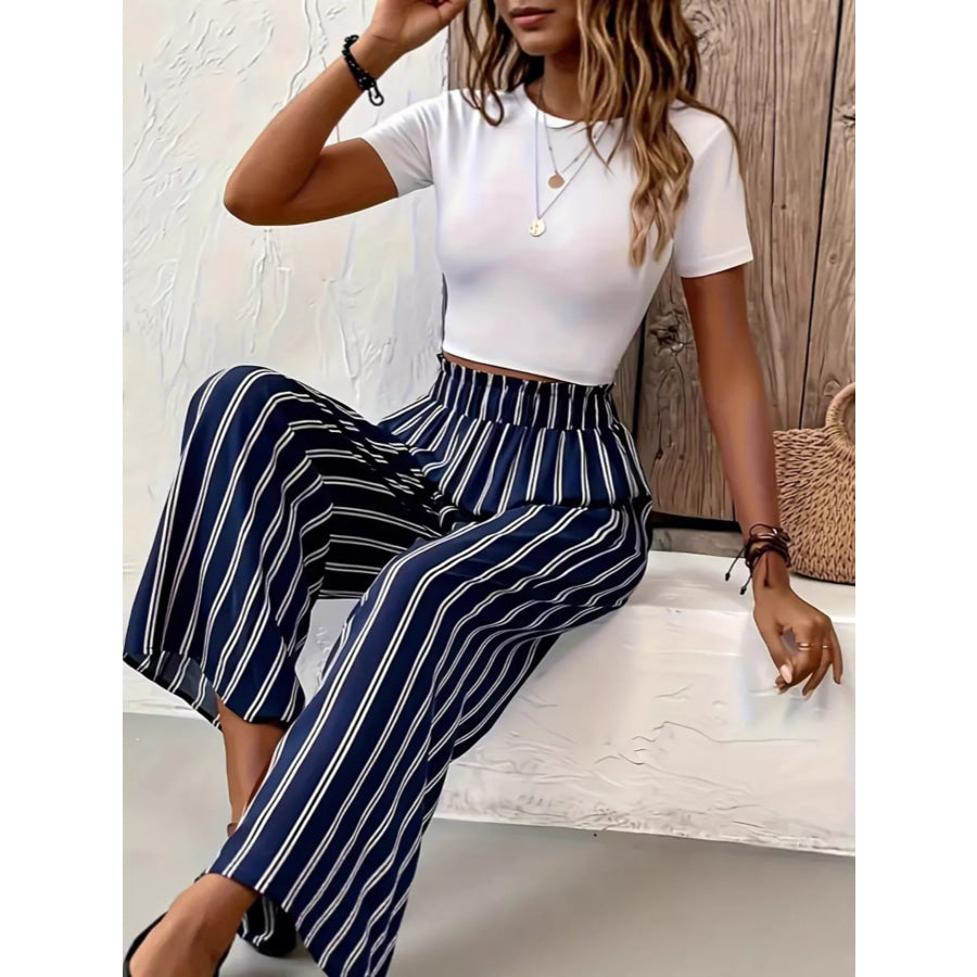 Full Size Striped High Waist Wide Leg Pants Plus Size