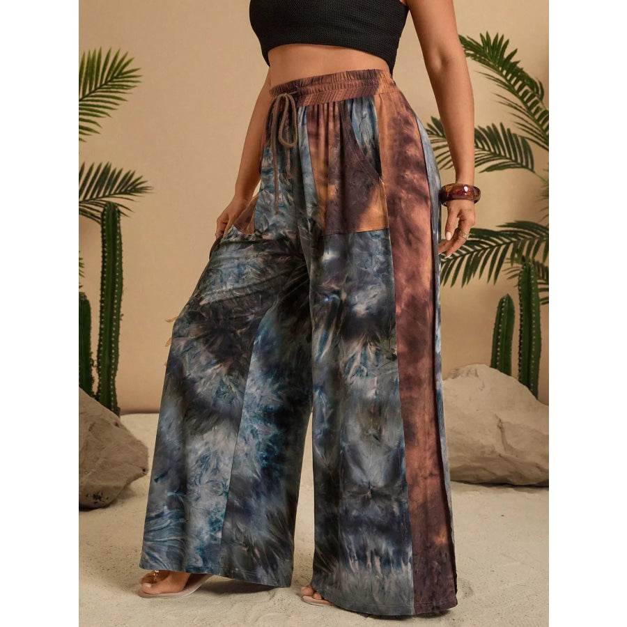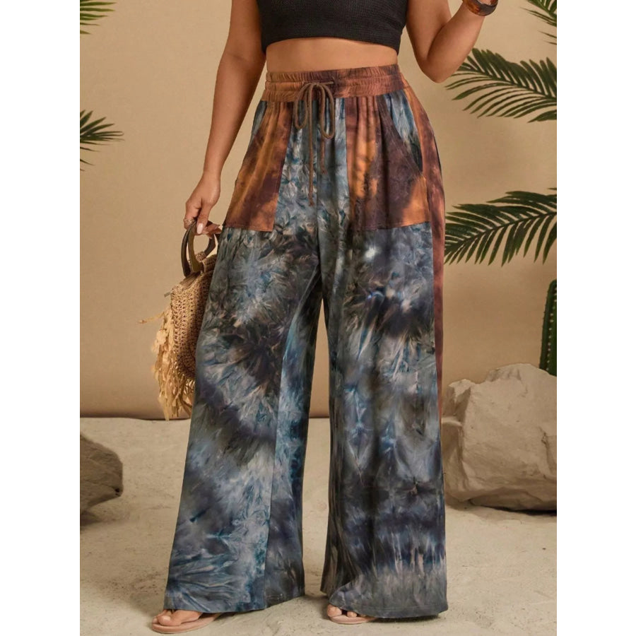 Full Size Tie-Dye Wide Leg Casual Pants Plus Size