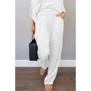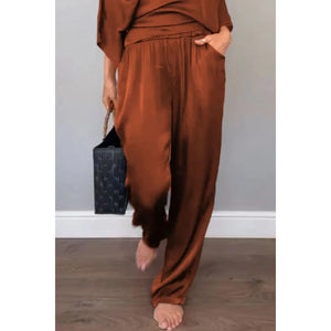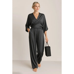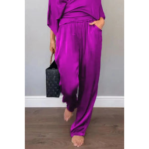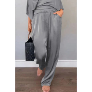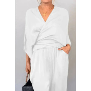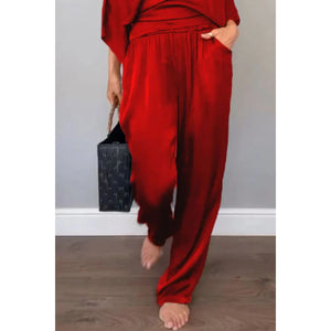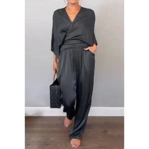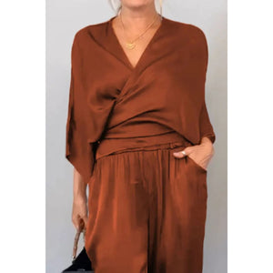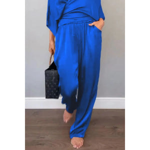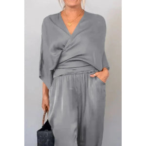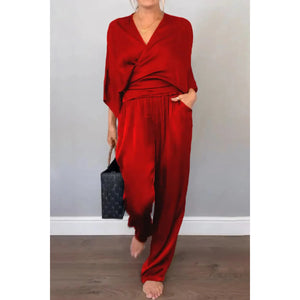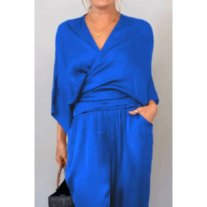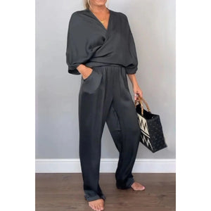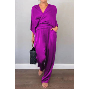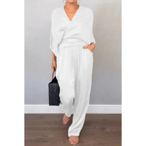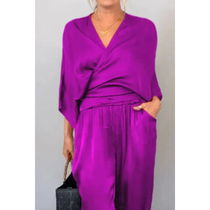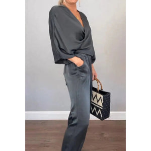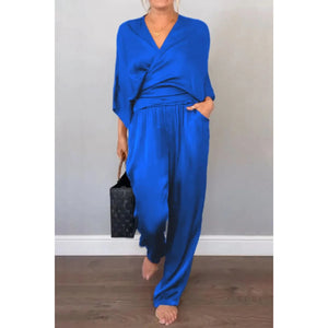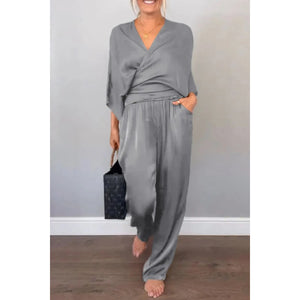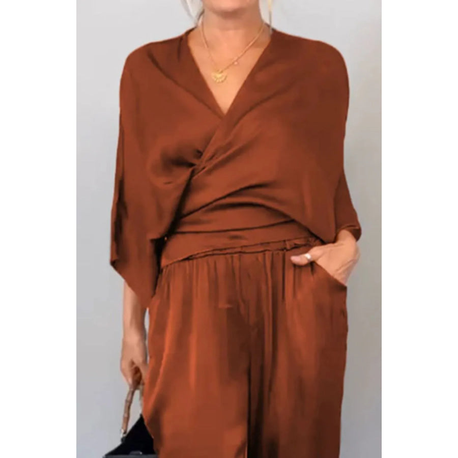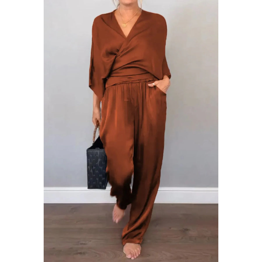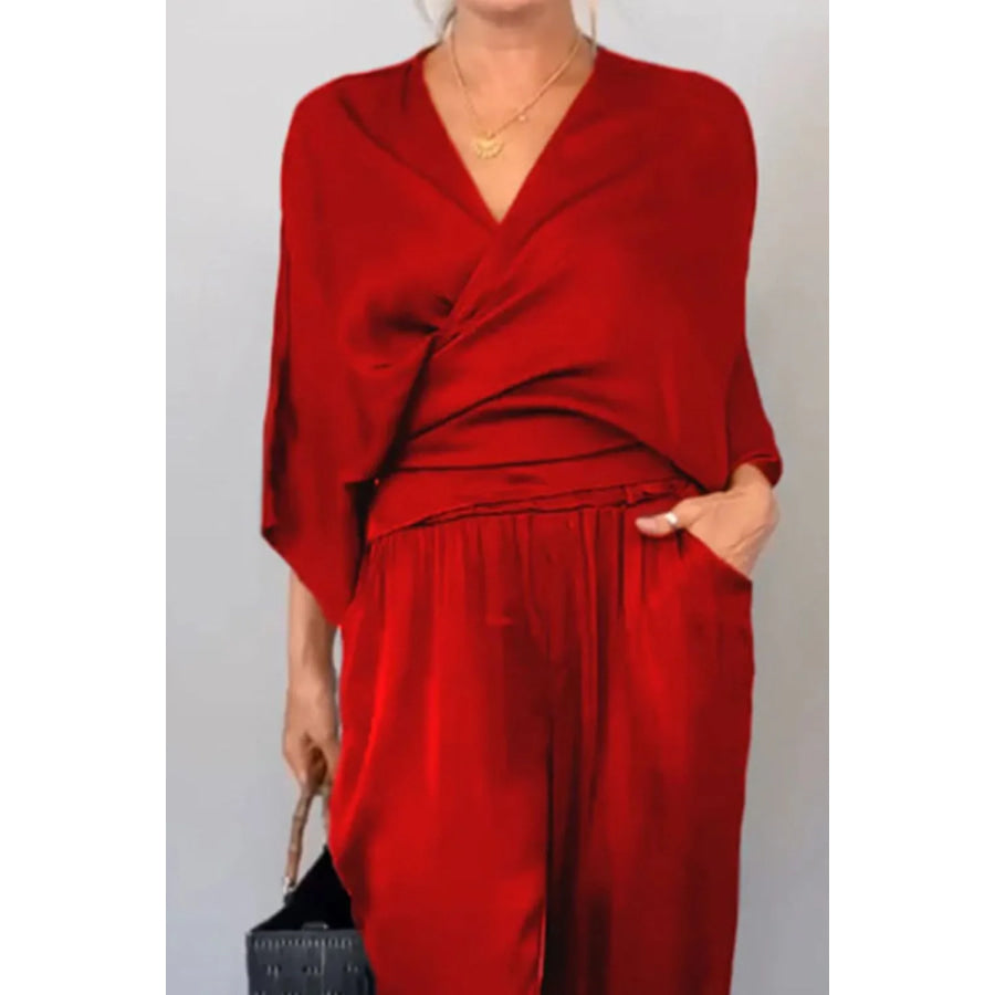 Full Size Wrap Surplice Top and Pants Set Plus Size