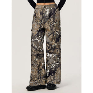 Graffiti Printed Wide Leg Cargo Pants