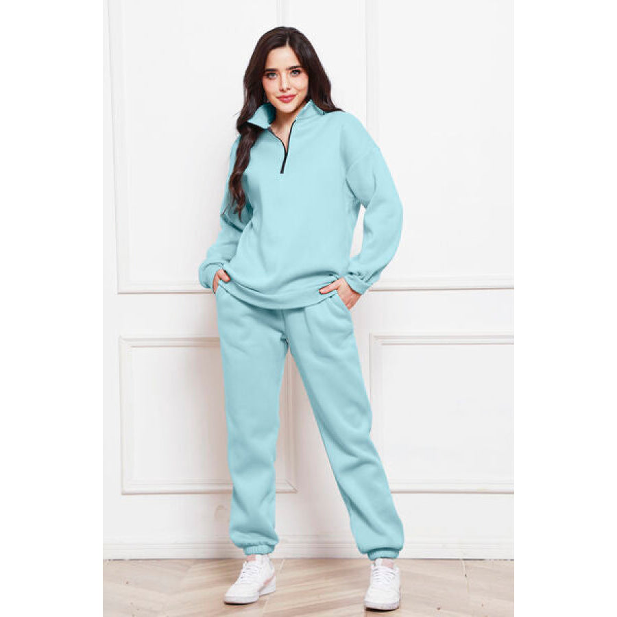 Half Zip Long Sleeve Sweatshirt and Pants Set