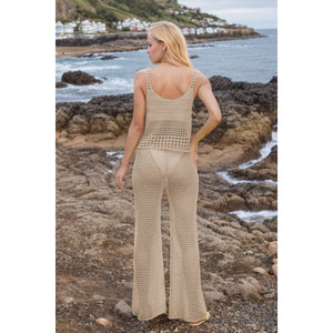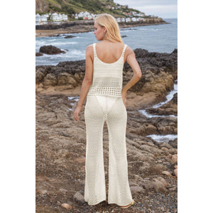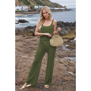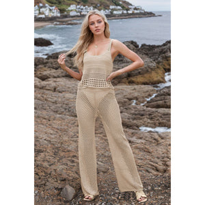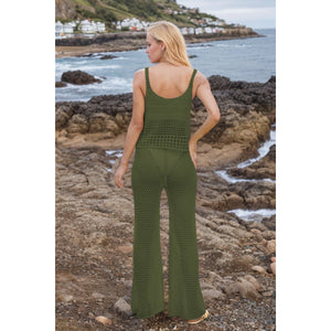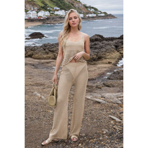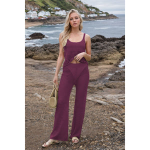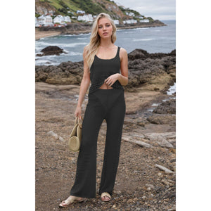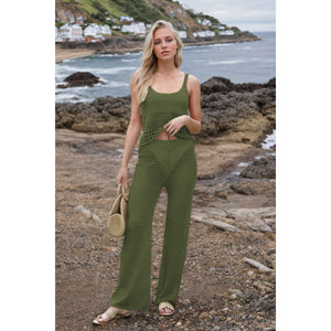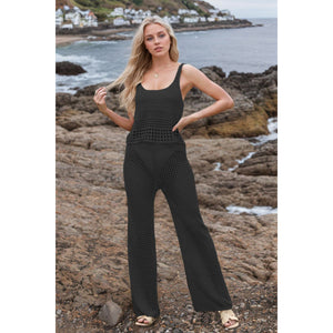 Hollow Out Round Neck Top and Pants Sweater Cover Up Set
