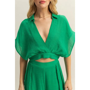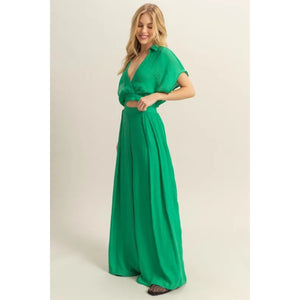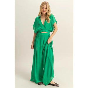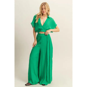 HYFVE Kimono Sleeve Crop Top and Wide Leg Pants Set