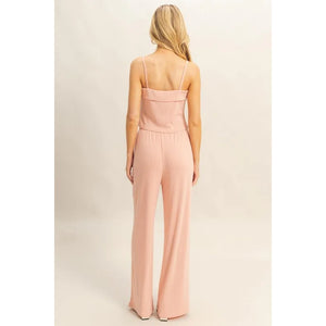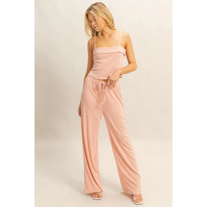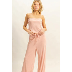 Elevate your loungewear game with this Rib Knit Cami Top and Pants Set. The ribbed knit fabric adds texture and interest to the set, creating a cozy and stylish look. The cami top offers a flattering silhouette and a hint of chic elegance, while the coordinating pants provide ultimate comfort with a stylish edge. This set is perfect for relaxing at home or running quick errands in style. Embrace comfort and fashion with this versatile and trendy loungewear set that combines style and comfort effortlessly.