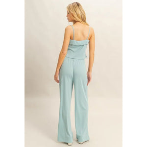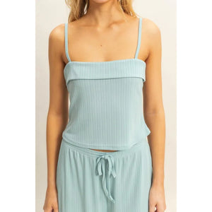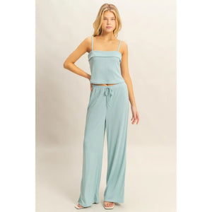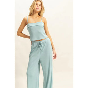 Elevate your loungewear game with this Rib Knit Cami Top and Pants Set. The ribbed knit fabric adds texture and interest to the set, creating a cozy and stylish look. The cami top offers a flattering silhouette and a hint of chic elegance, while the coordinating pants provide ultimate comfort with a stylish edge. This set is perfect for relaxing at home or running quick errands in style. Embrace comfort and fashion with this versatile and trendy loungewear set that combines style and comfort effortlessly.