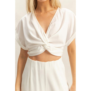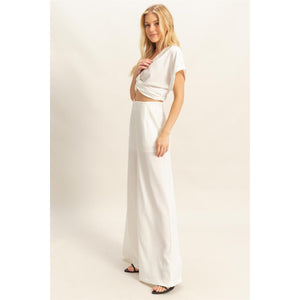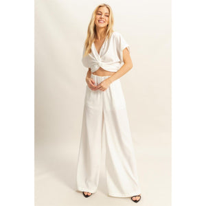 HYFVE Twisted Front Short Sleeve Top and Wide Leg Pants Set