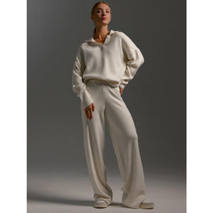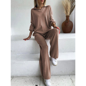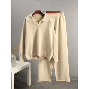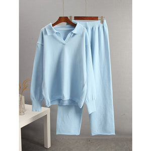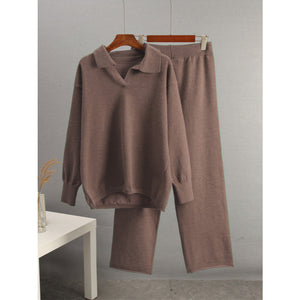 Johnny Collar Long Sleeve Top and Pants Sweater Set