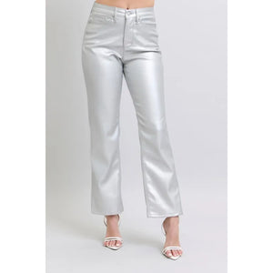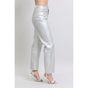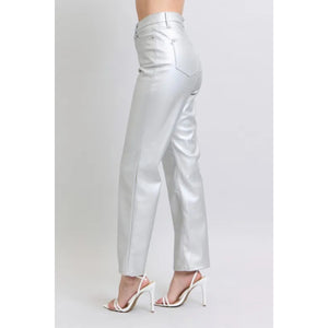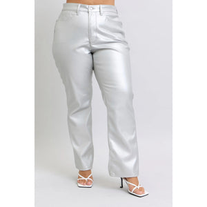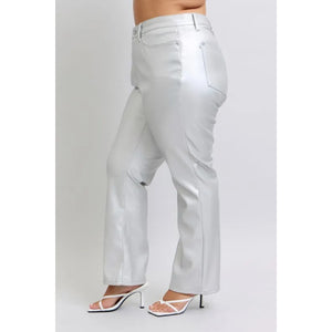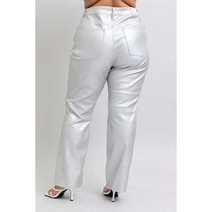 Judy Blue Full Size High Waist Silver Faux Leather Pants Plus Size