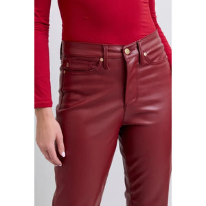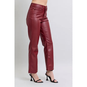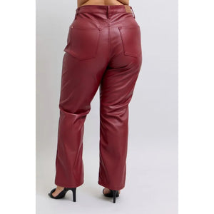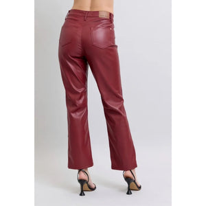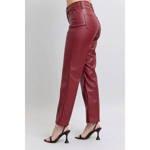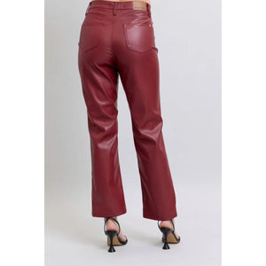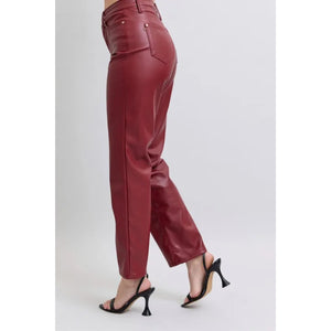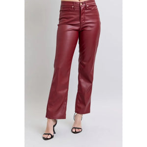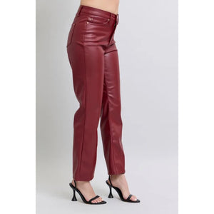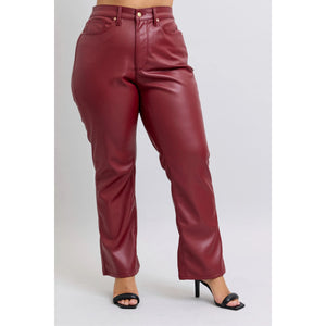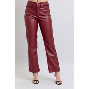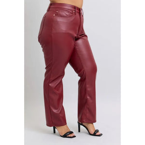 Judy Blue Full Size High Waist Tummy Control Faux Leather Straight Pants Plus Size