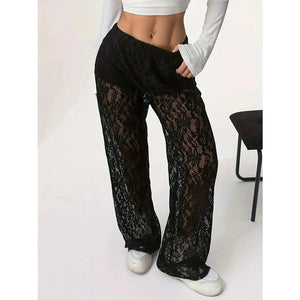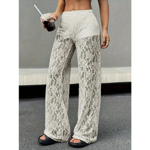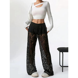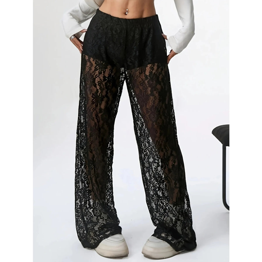 Lace Sheer Wide Leg Pants