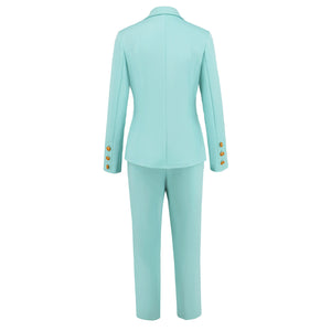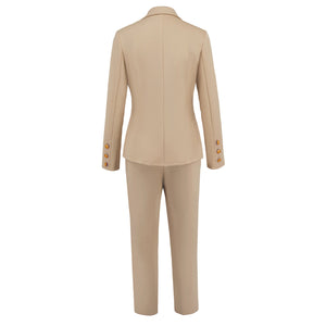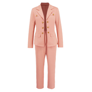 Lapel Collar Long Sleeve Blazer and Pants Set