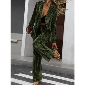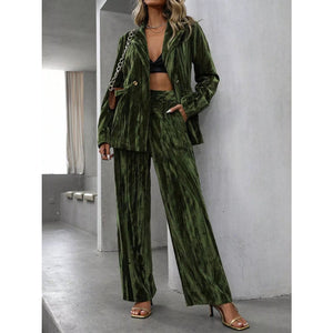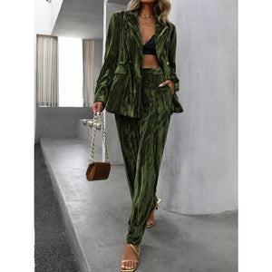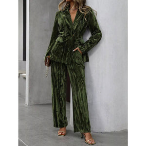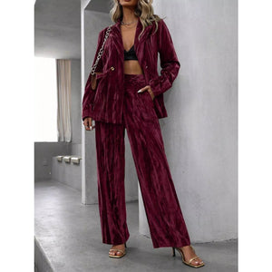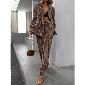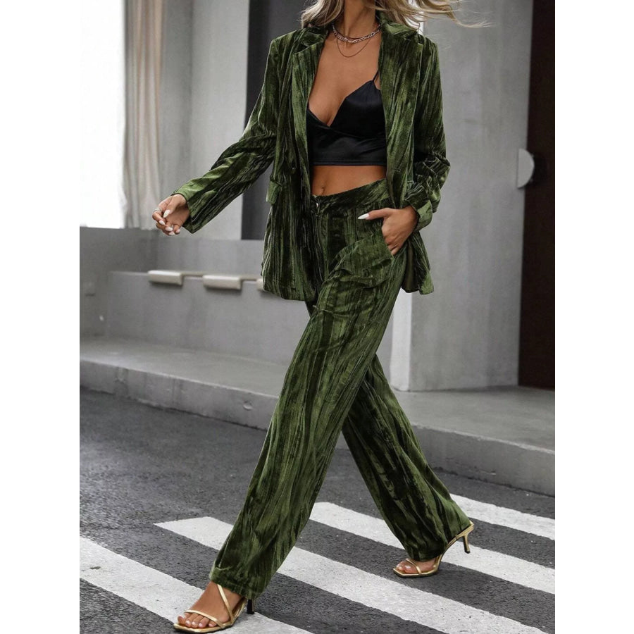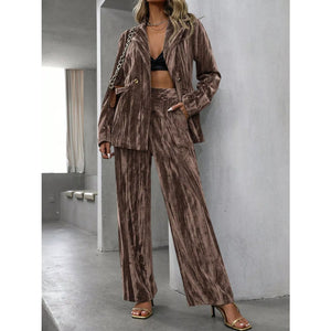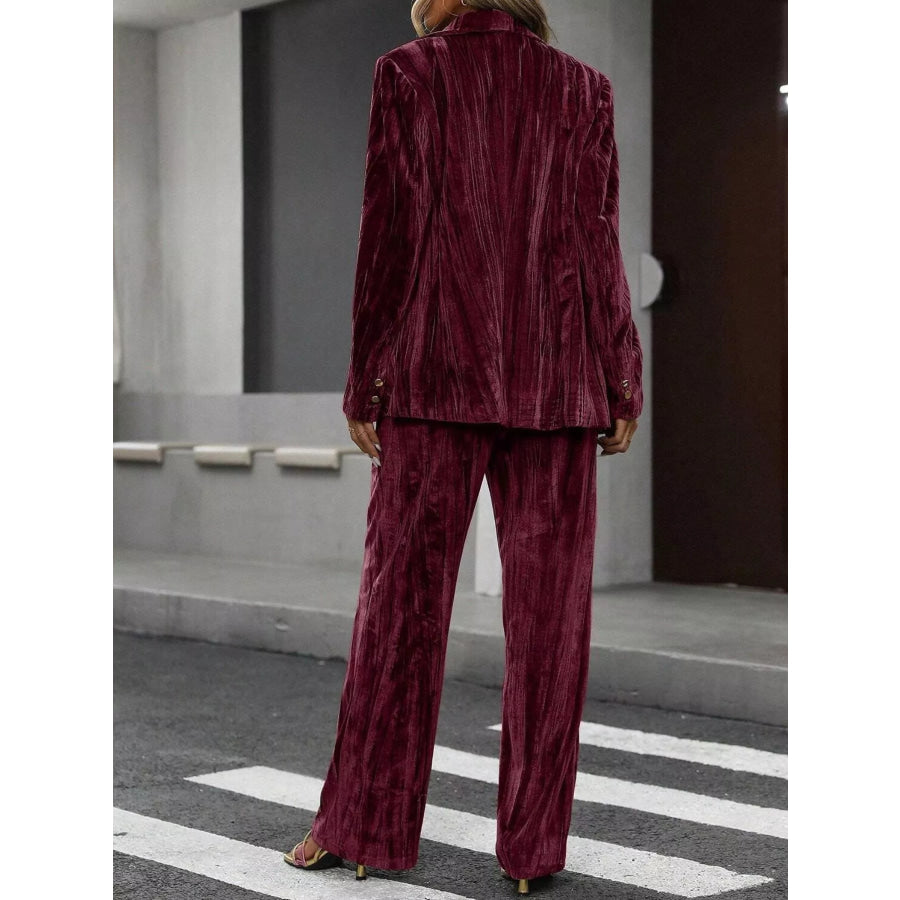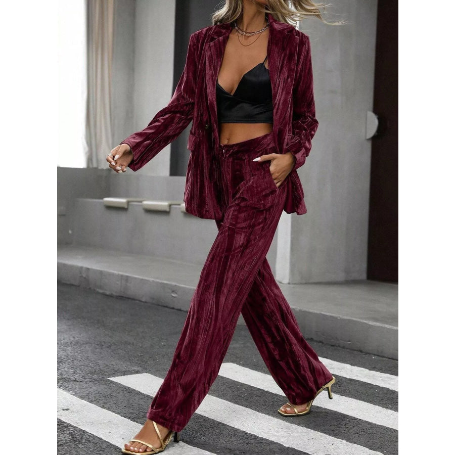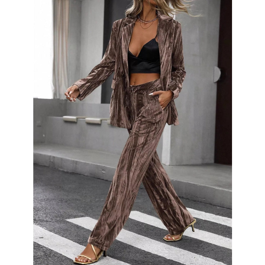 Lapel Collar Long Sleeve Blazer and Pants Set