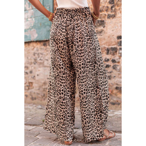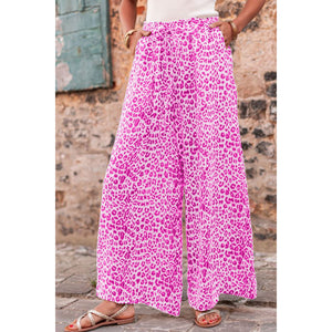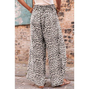 Leopard Drawstring Wide Leg Pants
