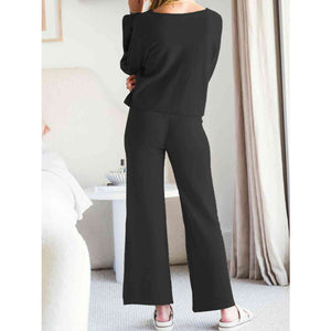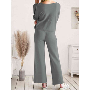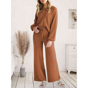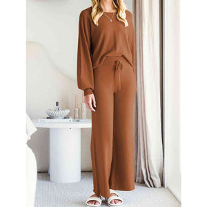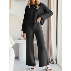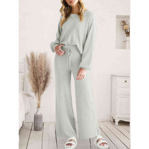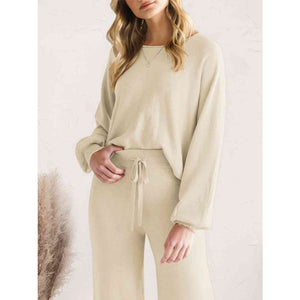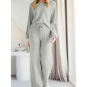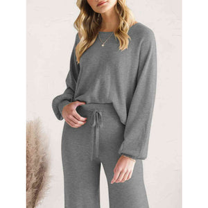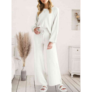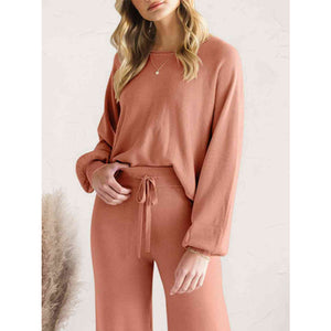 Long Sleeve Lounge Top and Drawstring Pants Set