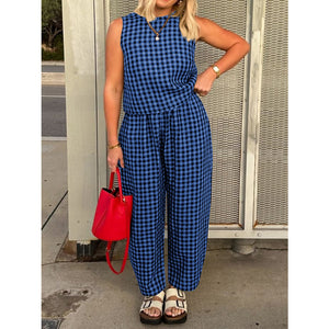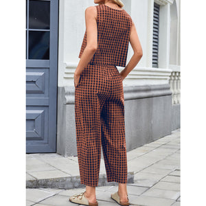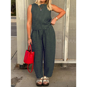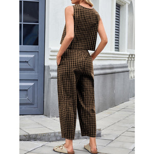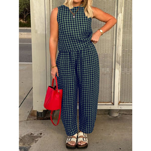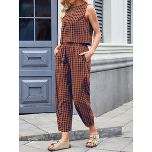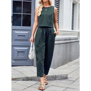 Lovelet Plaid Round Neck Sleeveless Top and Pants Set