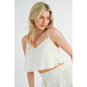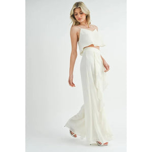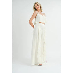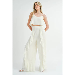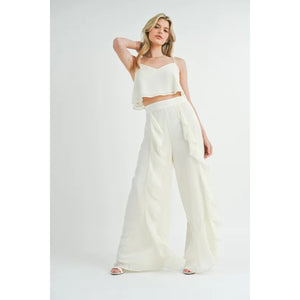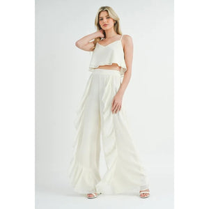 MABLE Crop Cami and Ruffled Wide Leg Pants Set