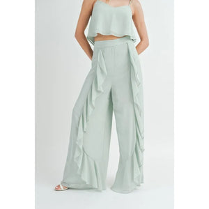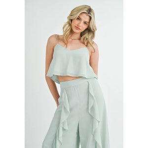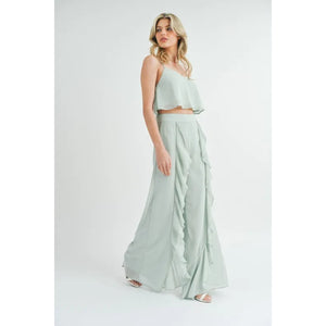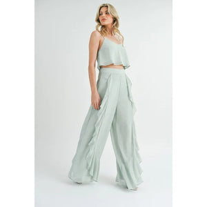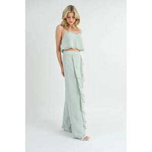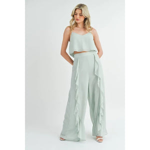 MABLE Crop Cami and Ruffled Wide Leg Pants Set