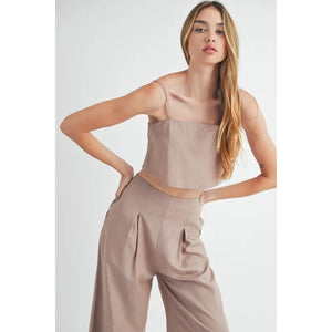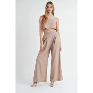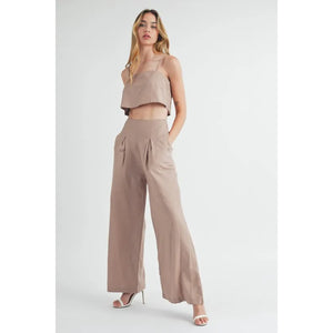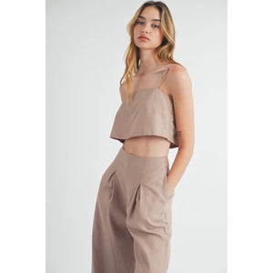 MABLE Linen Mix Crop Cami and Wide Leg Pants Set