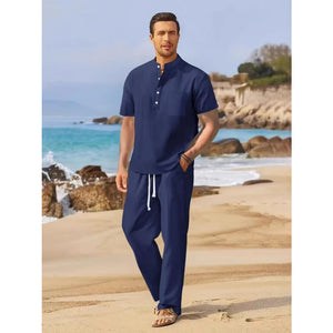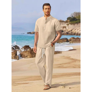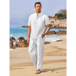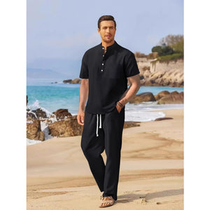 Men's Full Size Half Button Top and Drawstring Pants Set Plus Size