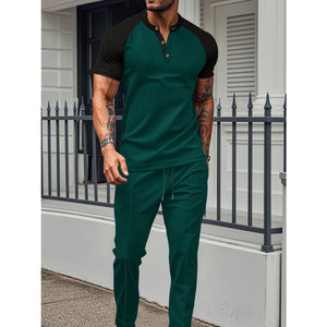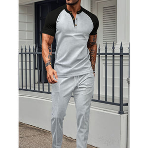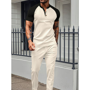 Men's Full Size Waffle-Knit Contrast Top and Drawstring Pants Set Plus Size
